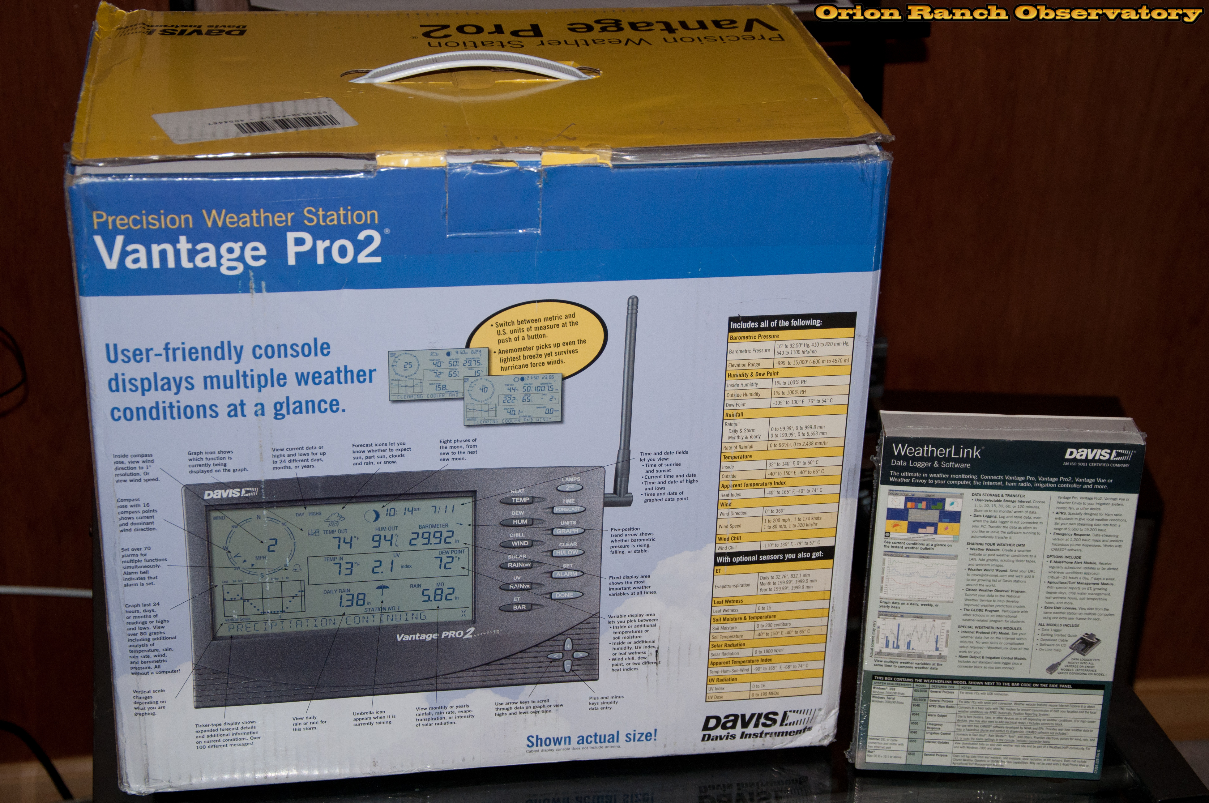 Vantage Pro2 weather station and usb data logger.