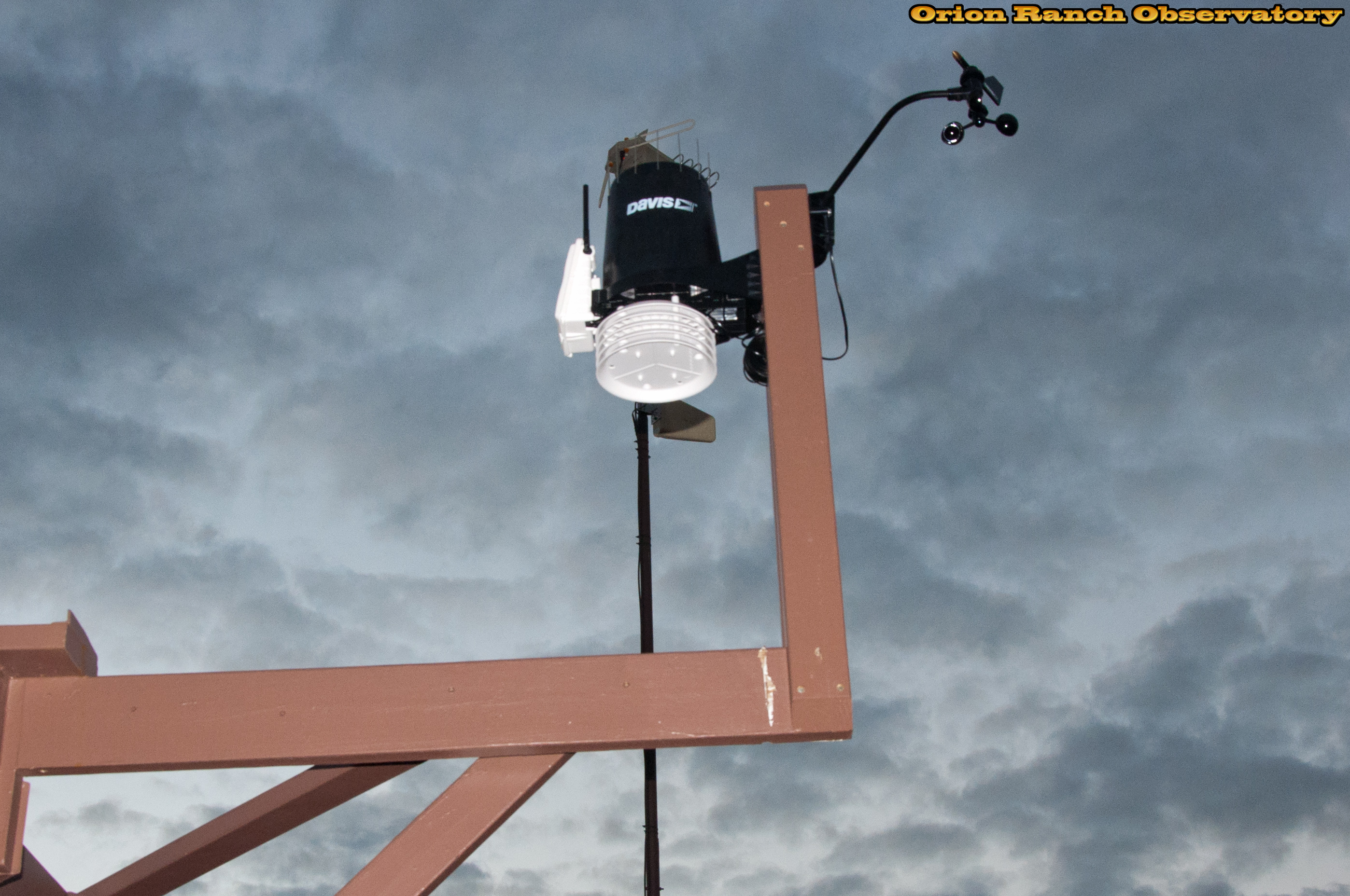 Post and weather station installed on the observatory in time for the rains (that didn't materialize). Still need to paint the support where the old station was removed.