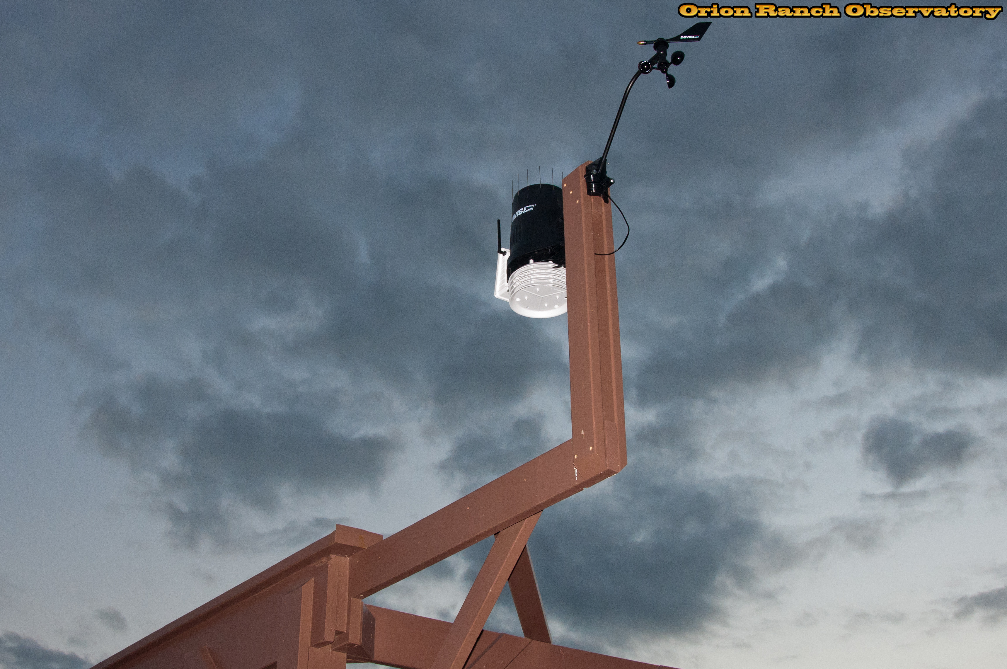 Post and weather station installed on the observatory in time for the rains (that didn't materialize). Still need to paint the support where the old station was removed.