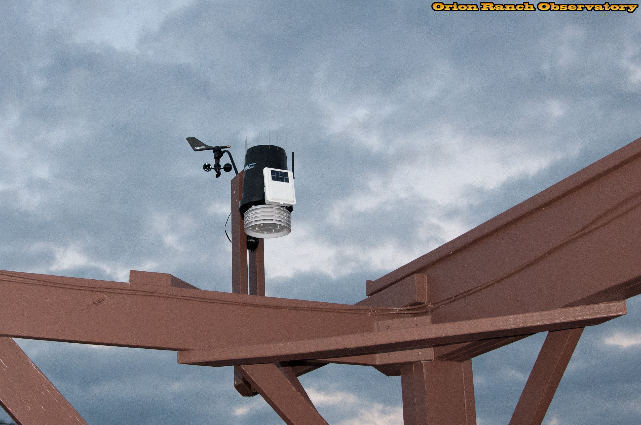Post and weather station installed on the observatory in time for the rains (that didn't materialize). Still need to paint the support where the old station was removed.