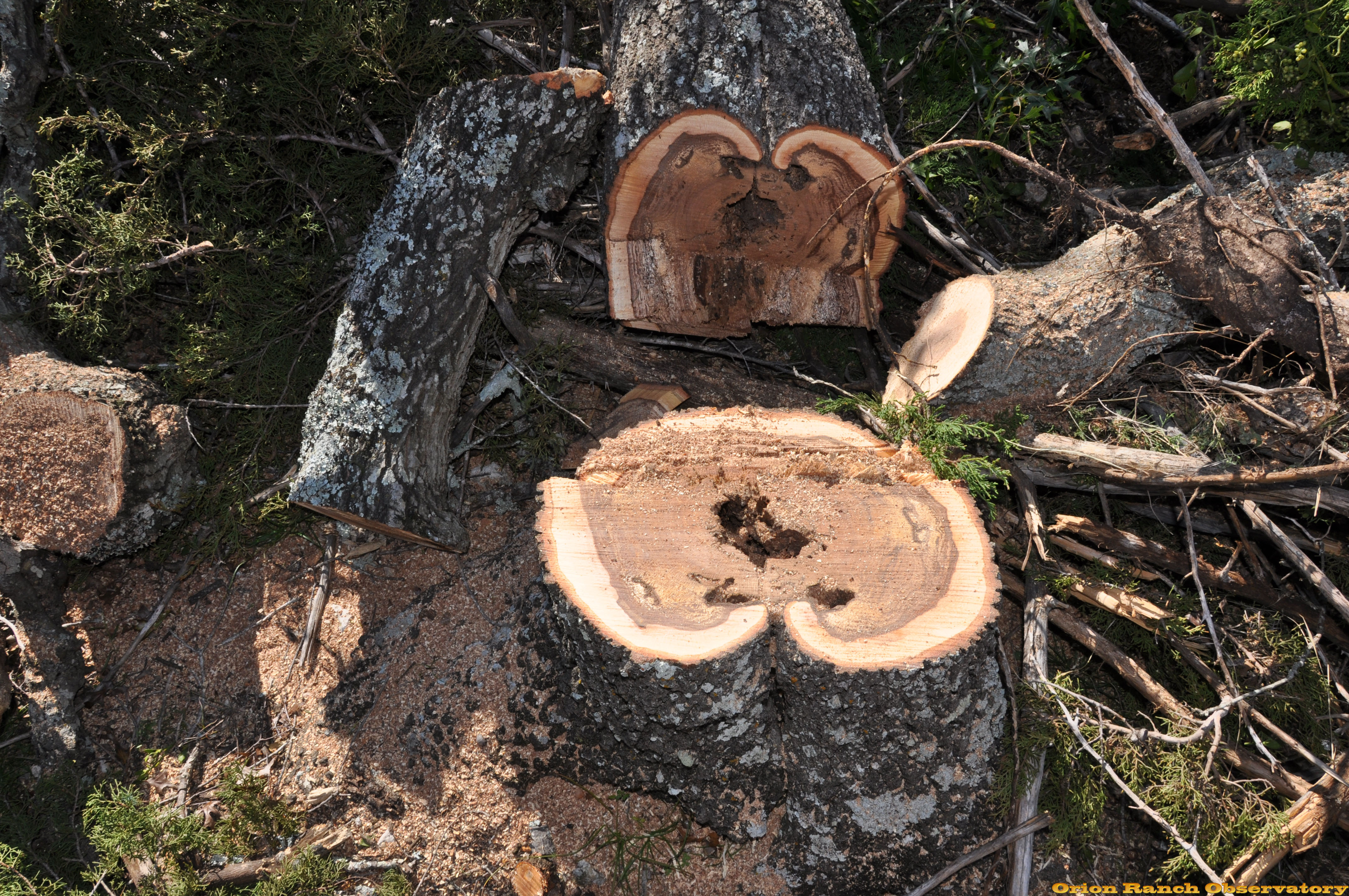 Turns out the tree had almost died completely several years back, and while it had come back and appeared healthy on the surface, it was dead inside and carpenter ants were boring out the core. So, if I didn't take the tree down now, it would have eventually come down on the observatory. As painful as it was to remove such a large tree, I still have plenty more, and this opens up the skies for the observatory as well as preventing a future disaster! October 31st, 2009.