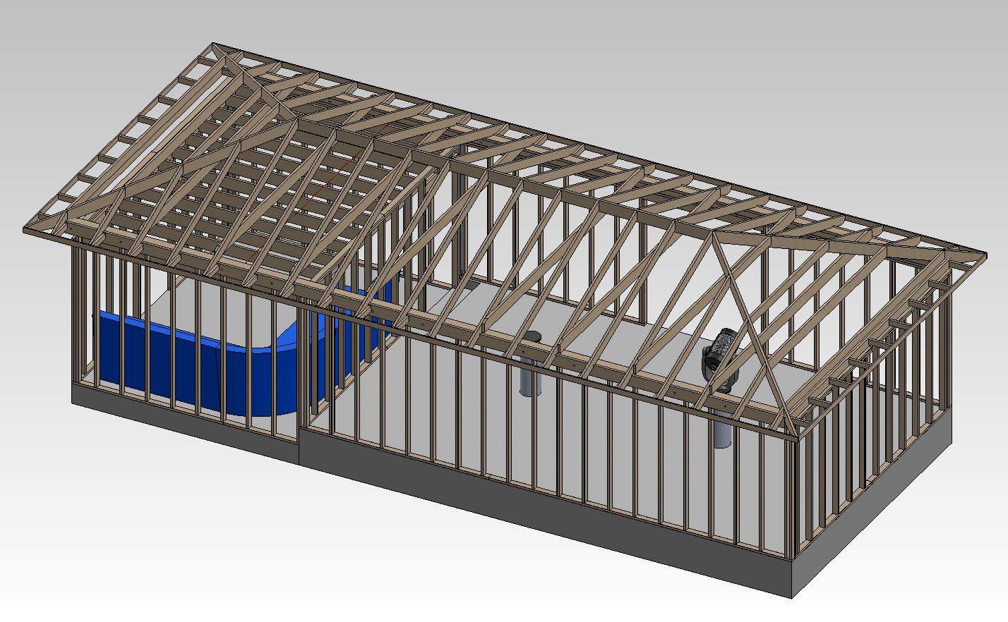 2) Consider a different, lighter design for the roof trusses, one that allows more overhead.