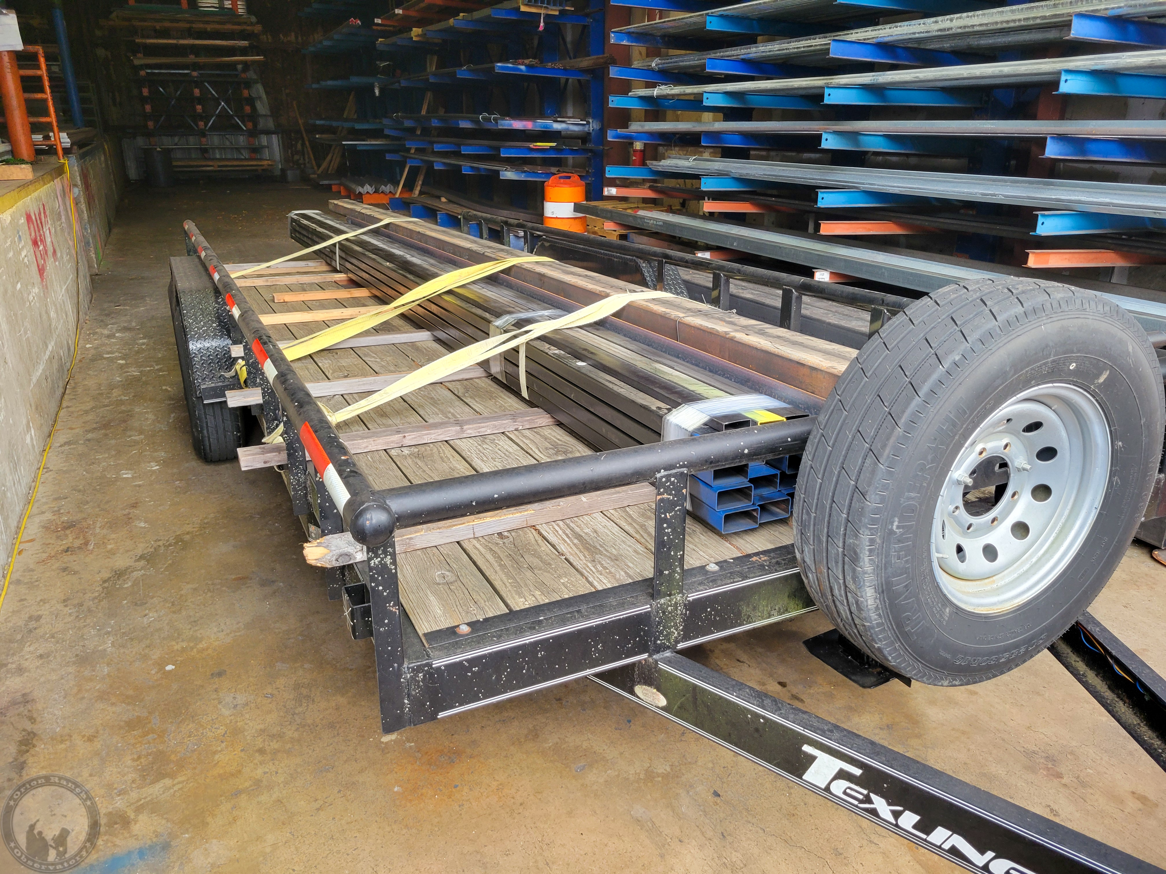 Loading everything and strapping it down at the metal supply company.