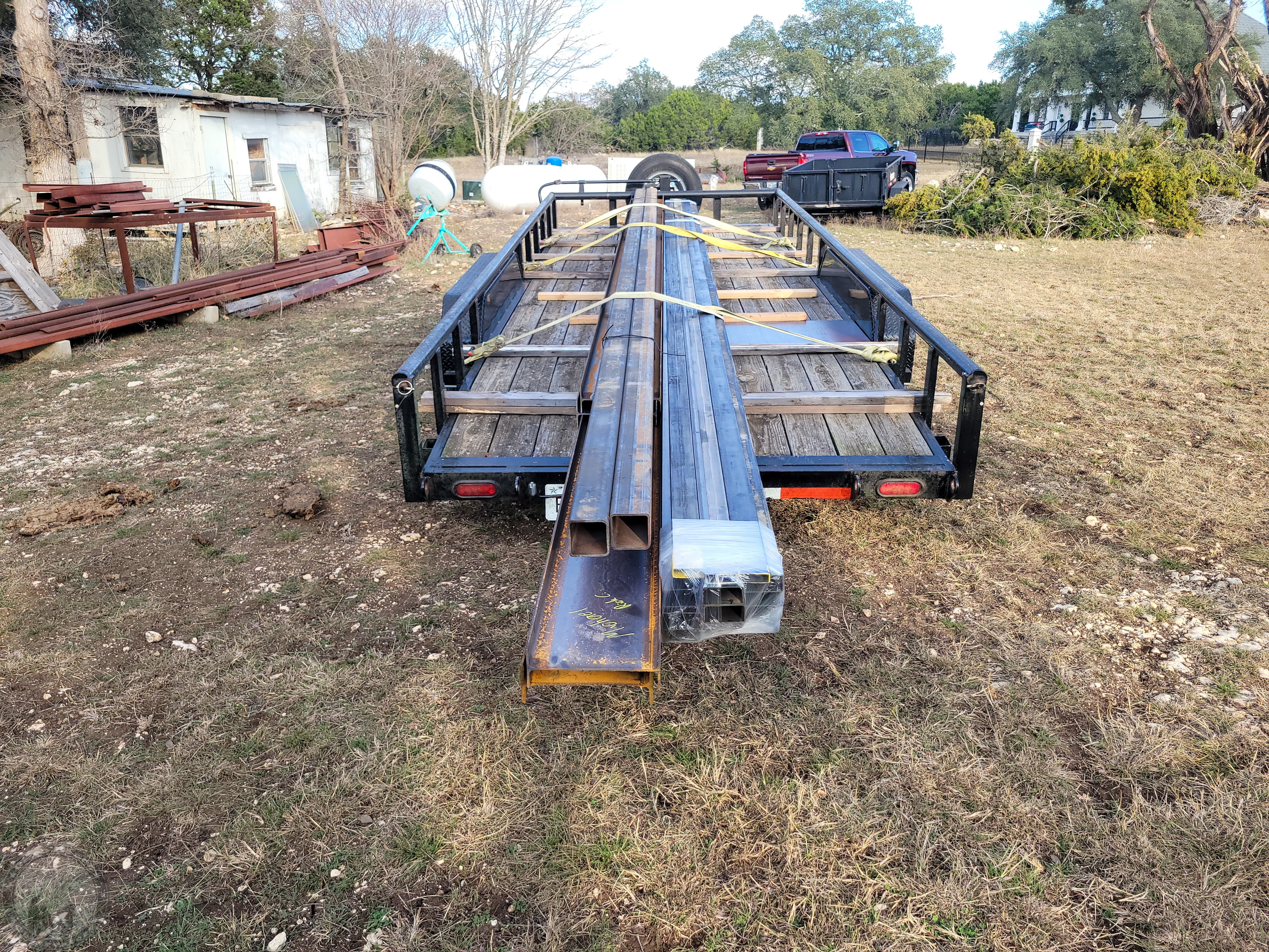 Parking the trailer load of metal near the observatory.