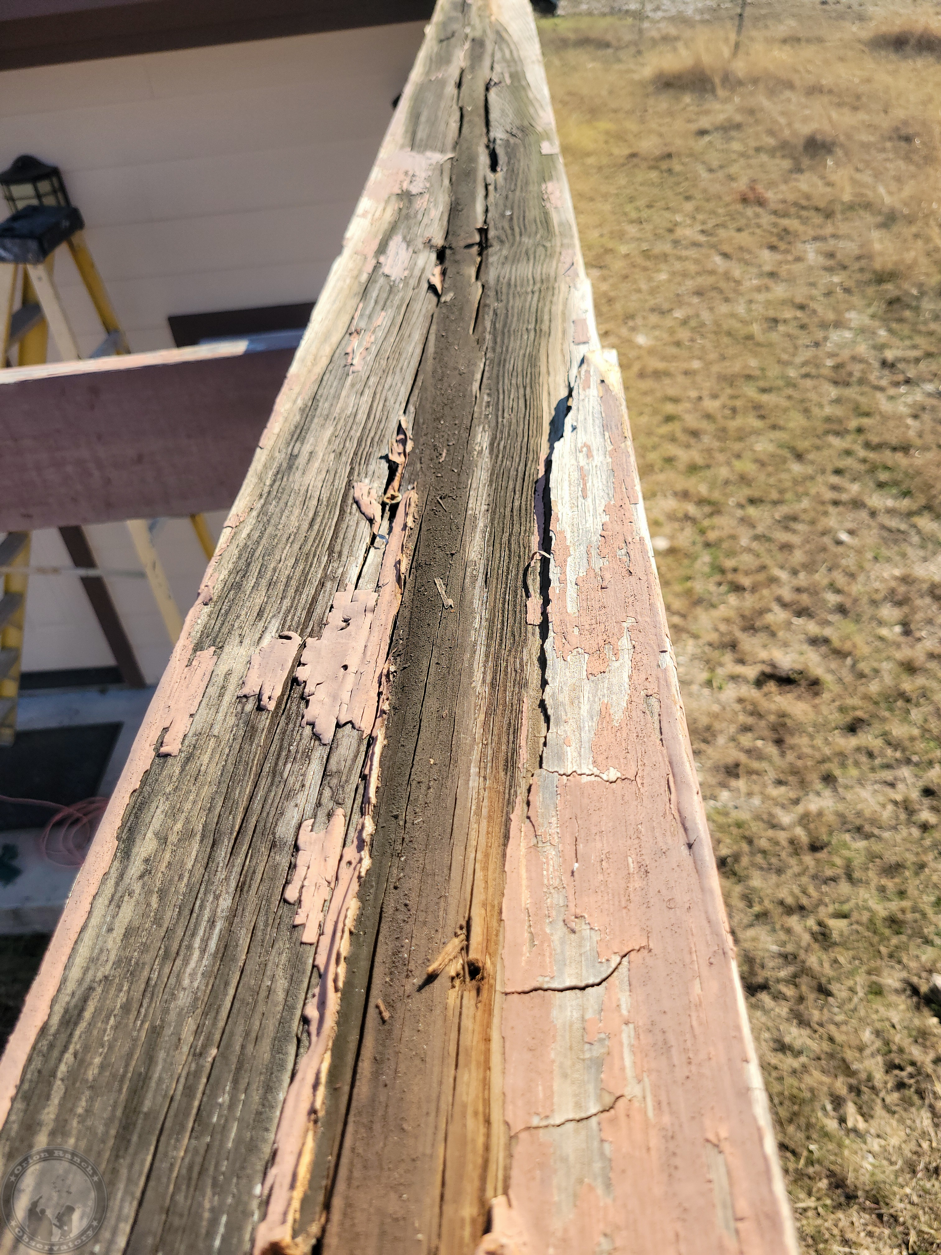 Removing all of the angle iron from the rails. Most of the rot is directly under the angle where it would hold the water. Overall, only the cap rail is damaged. The underlying beams are still in really good shape.