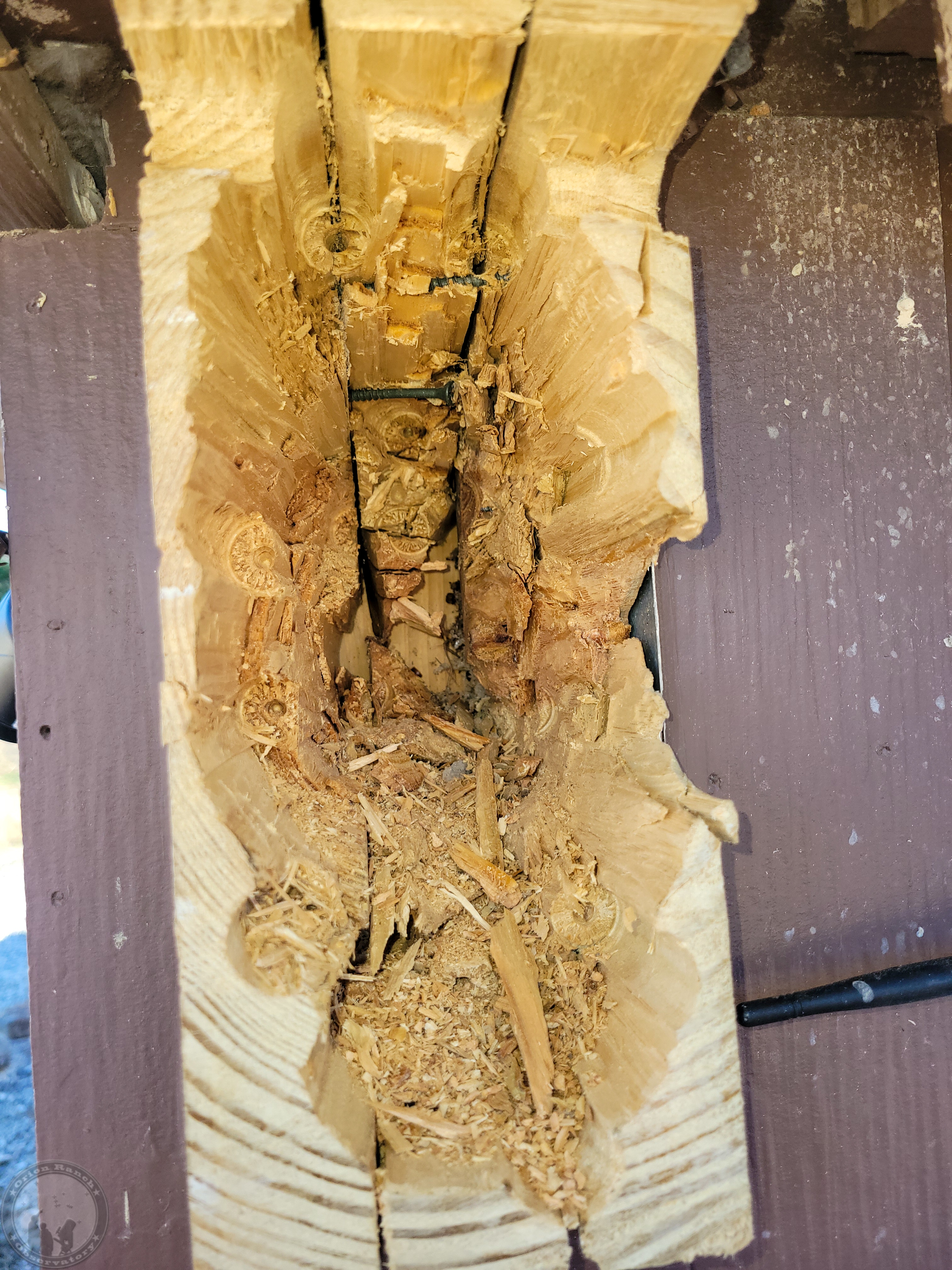 Sawing, drilling and chiseling for about 4.5 hours to get the rest of the other rail out of the observatory.