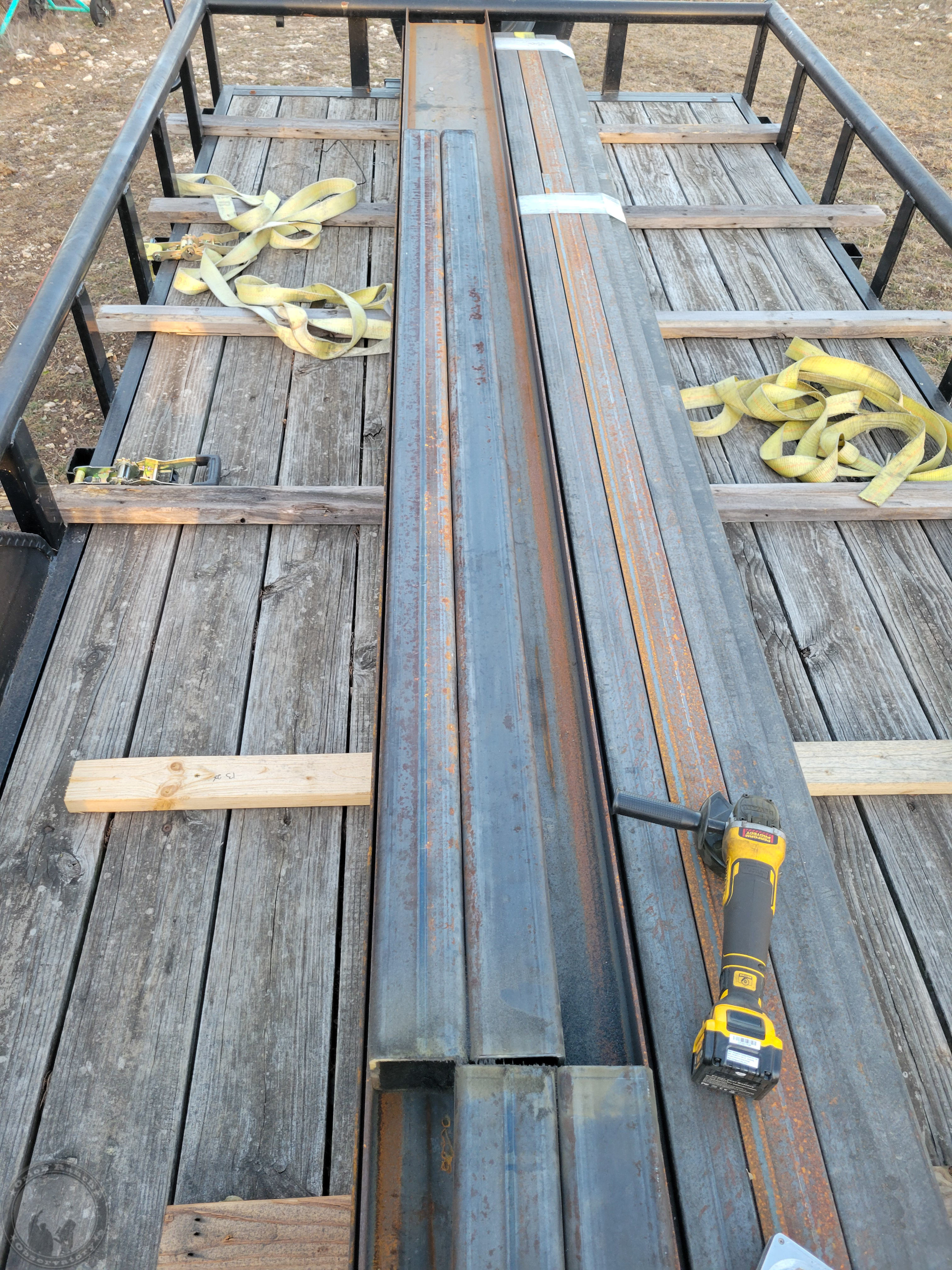 Cutting the 24' 4x4's into four posts. Unfortunately the length needed to be a bit more than 8', so I couldn't get three posts out of one piece as I'd originally planned. Ah well.