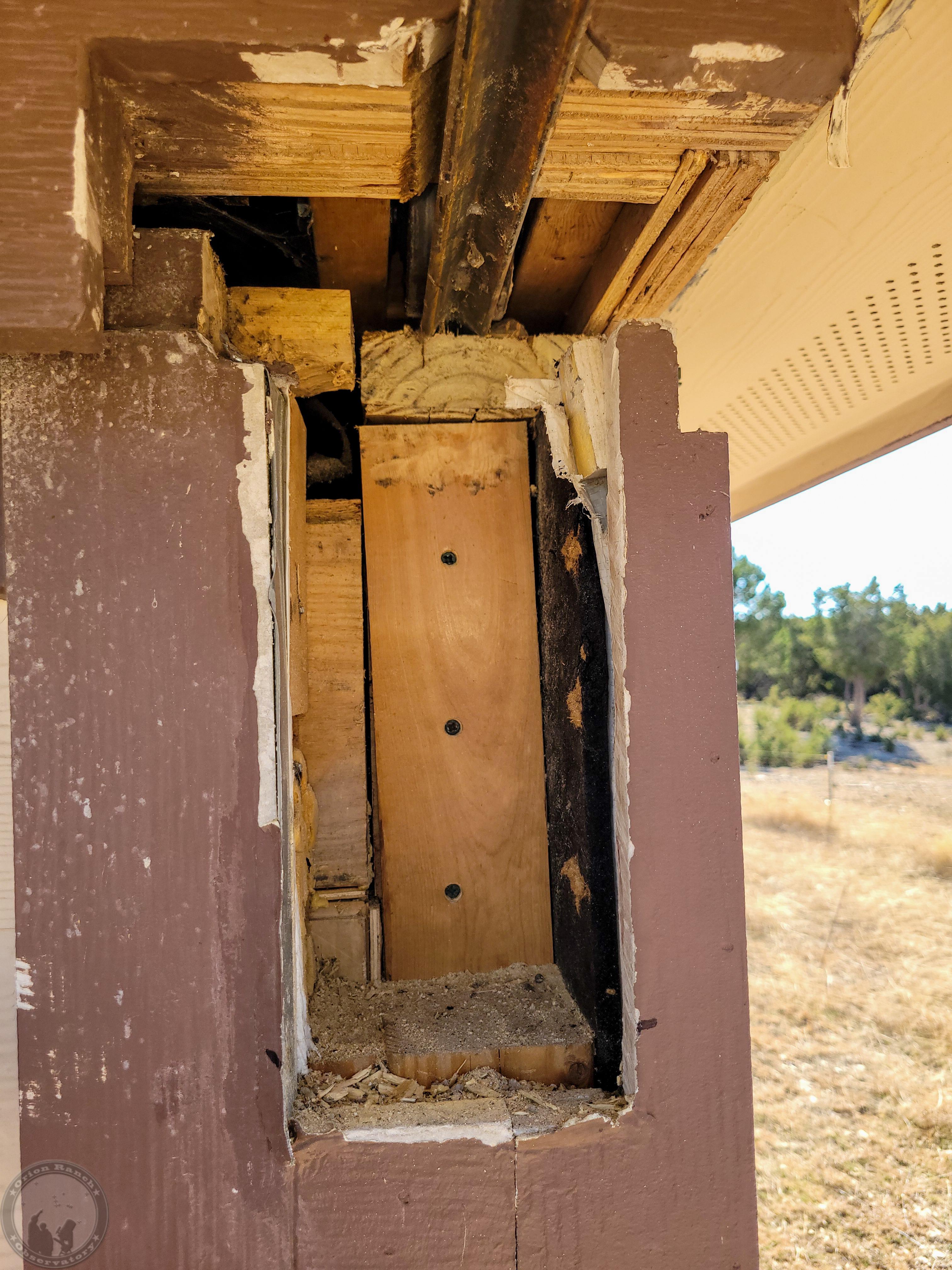 Adding a one-inch spacer to bring the side wall face out even with the corner of the warm room ceiling (and the warm room paneling in the lower corner). Also cutting the rail cap back to match that.