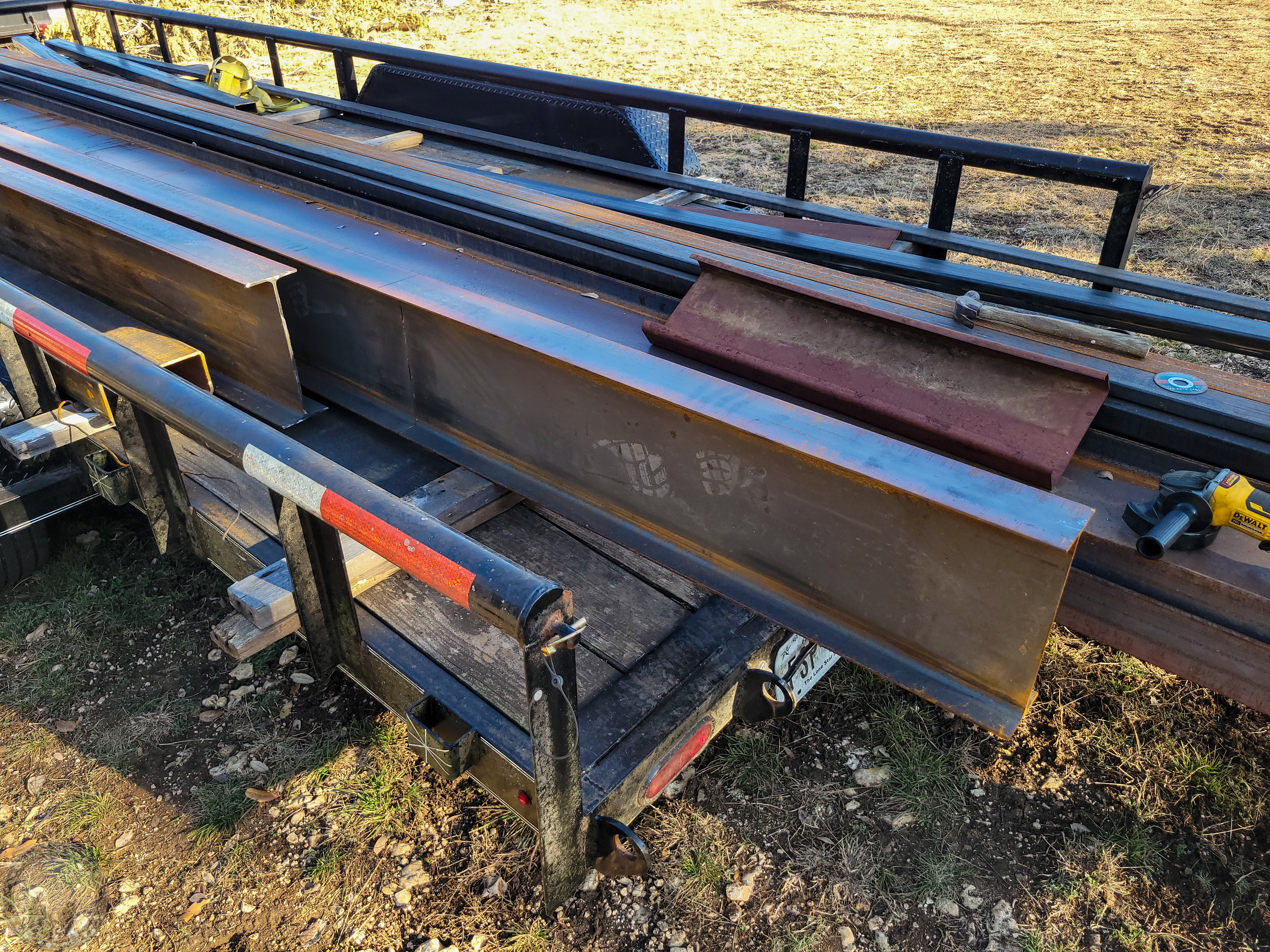 Cutting two rails to 16' - 1/2" long. First one done, second almost cut through.