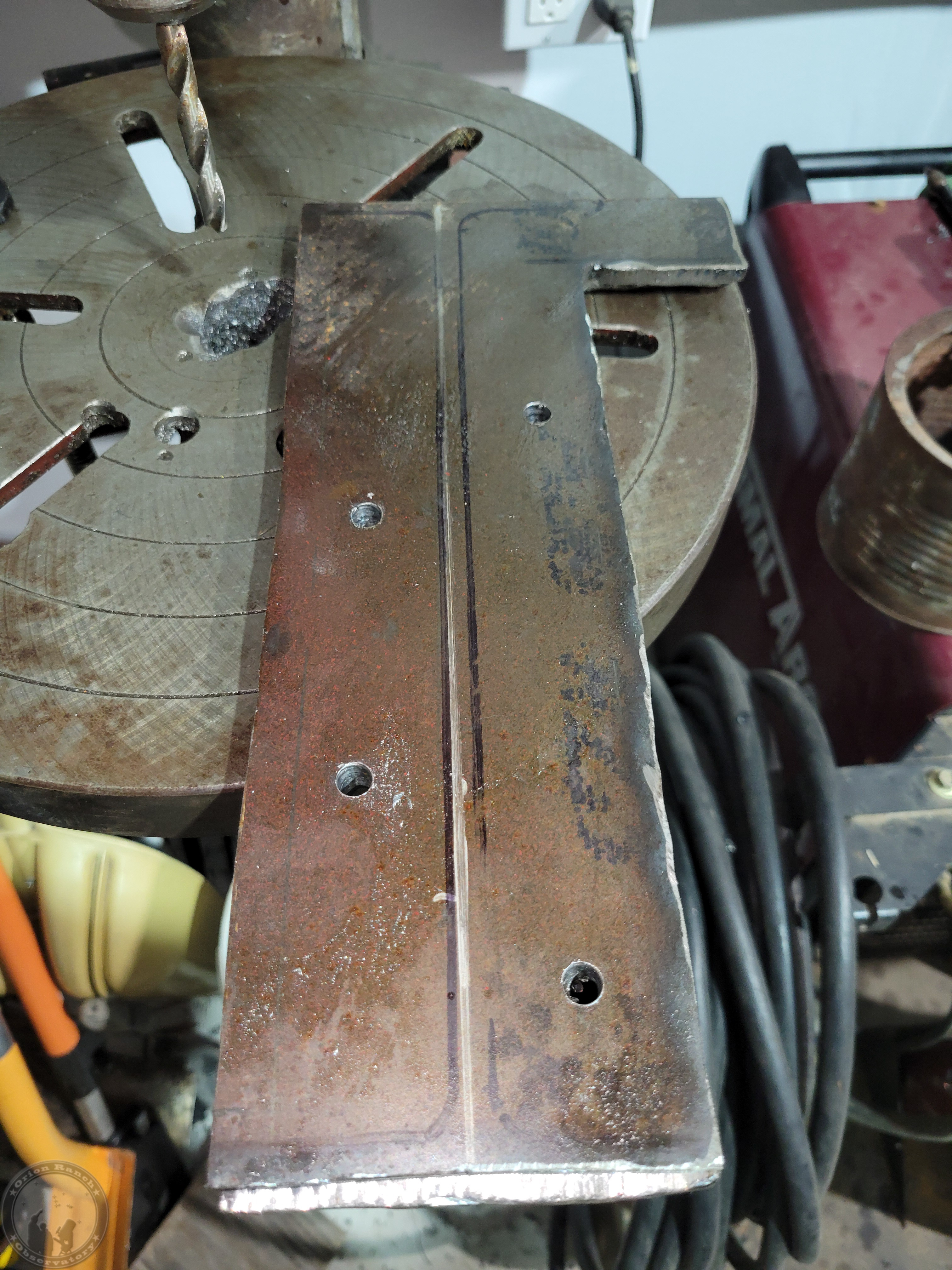 Adding 5/16" holes to the plates for using lag bolts to pull the rail tight to the observatory wall frame. This shouldn't be going anywhere after installation! At least not without taking part of the observatory with it.