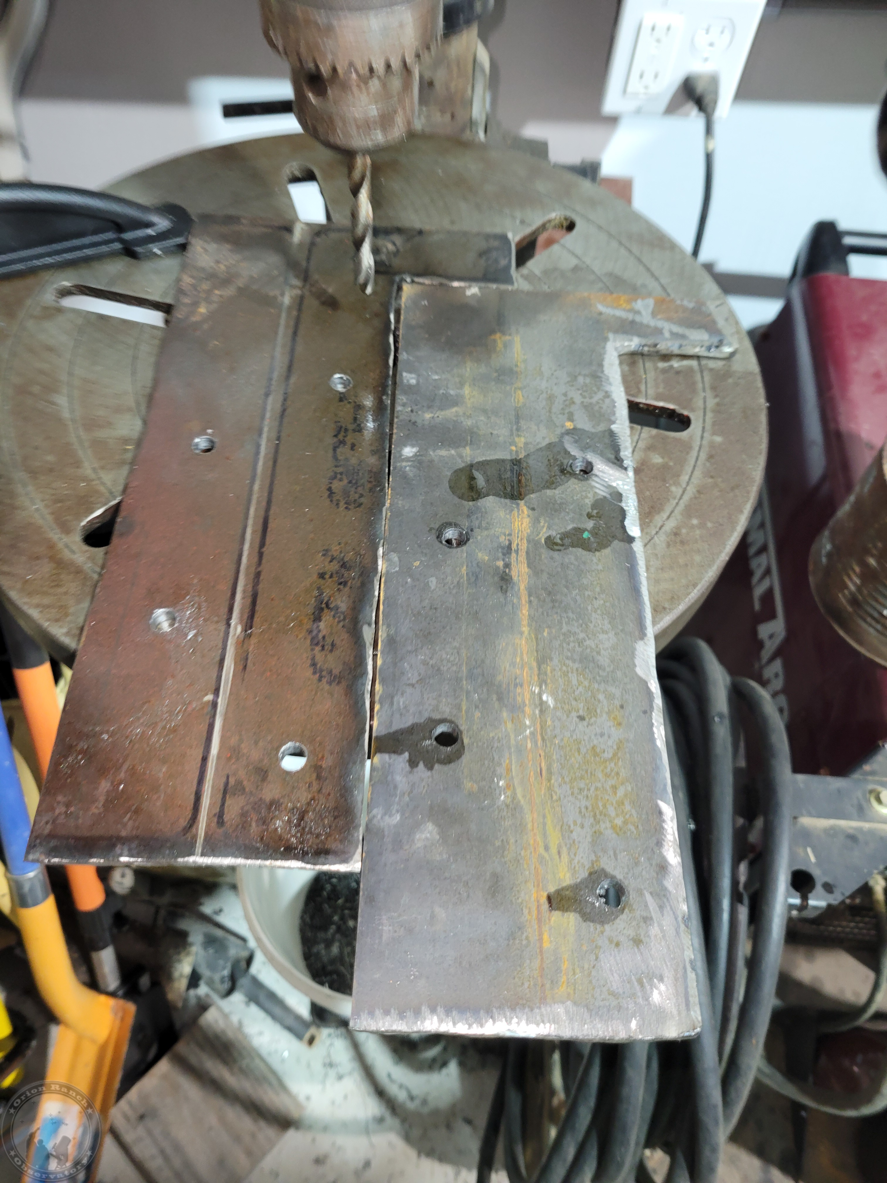 Adding 5/16" holes to the plates for using lag bolts to pull the rail tight to the observatory wall frame. This shouldn't be going anywhere after installation! At least not without taking part of the observatory with it.