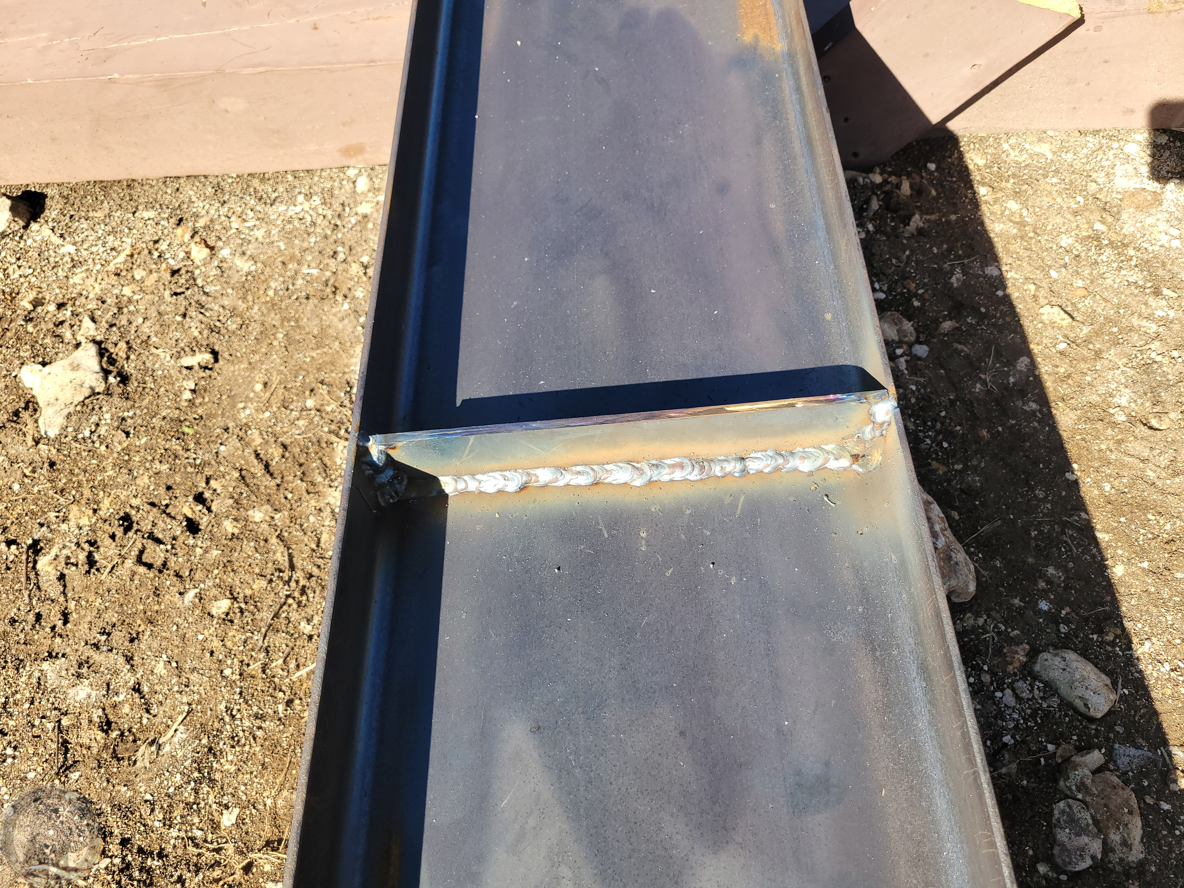 Welding the second stiffener into the second beam.