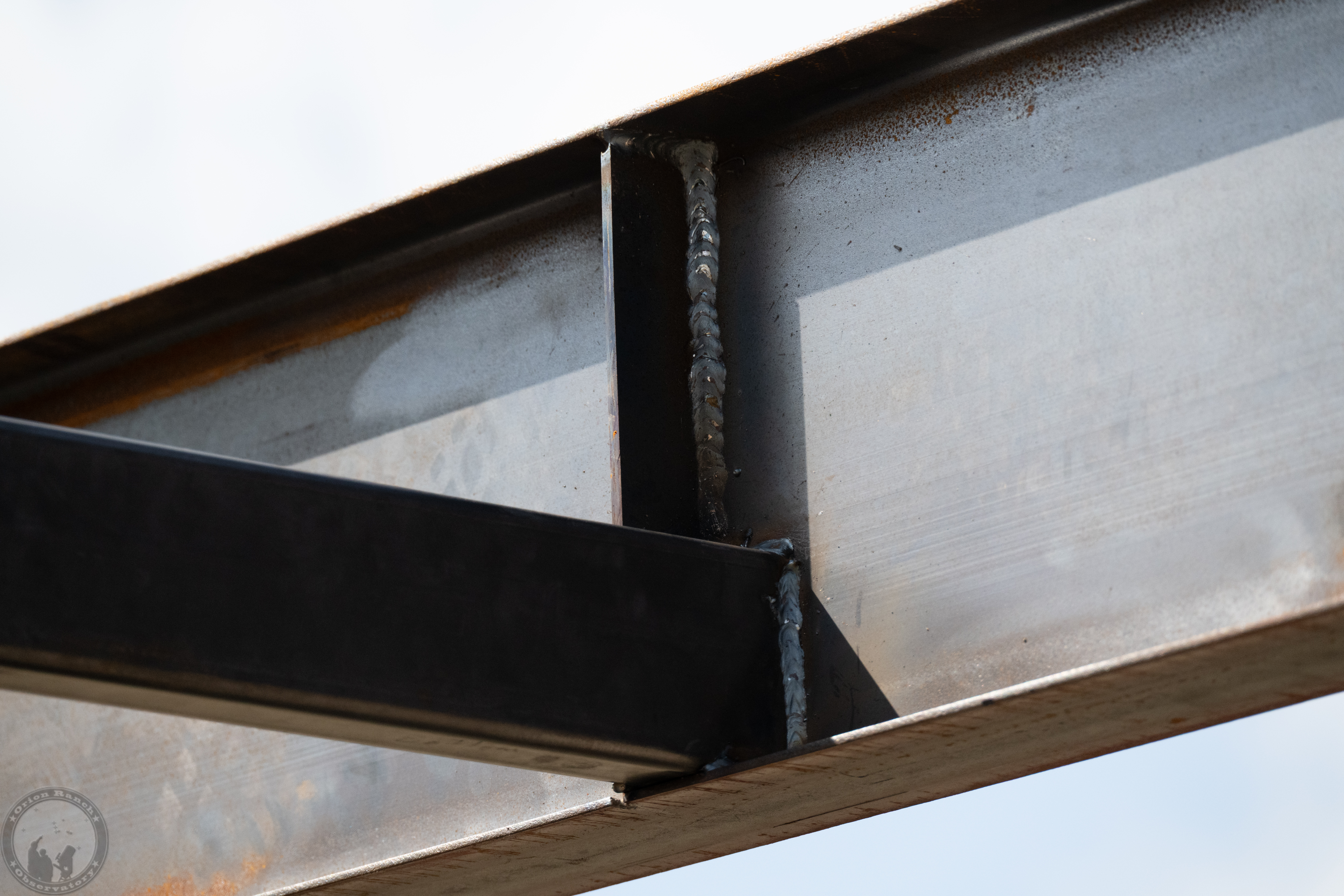 Views of the cross member welds from the ground with some sunlight.