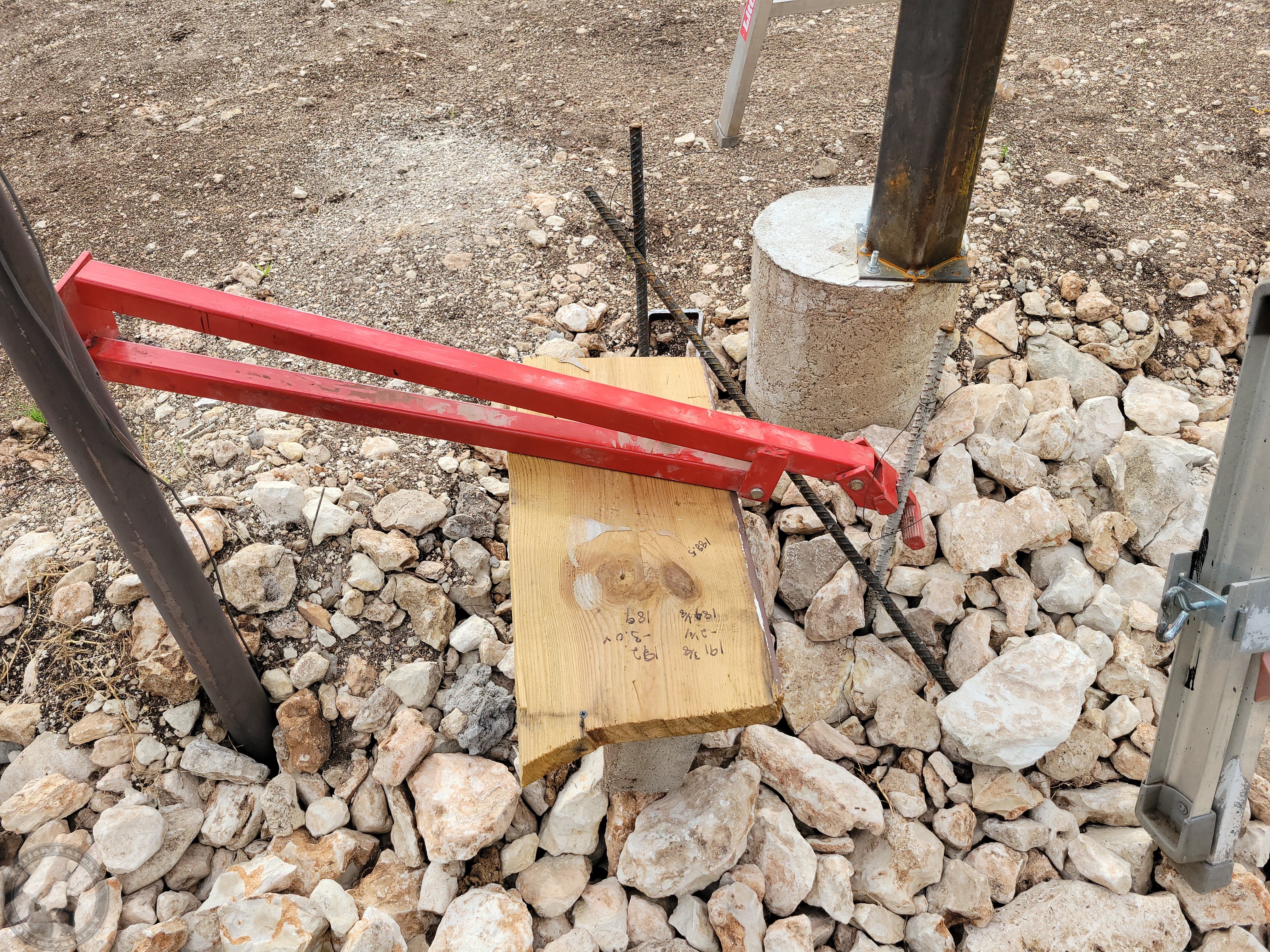 Removing the pieces of rebar used for batter boards for stringing the post positions originally. Didn't want to leave these in while working over them.