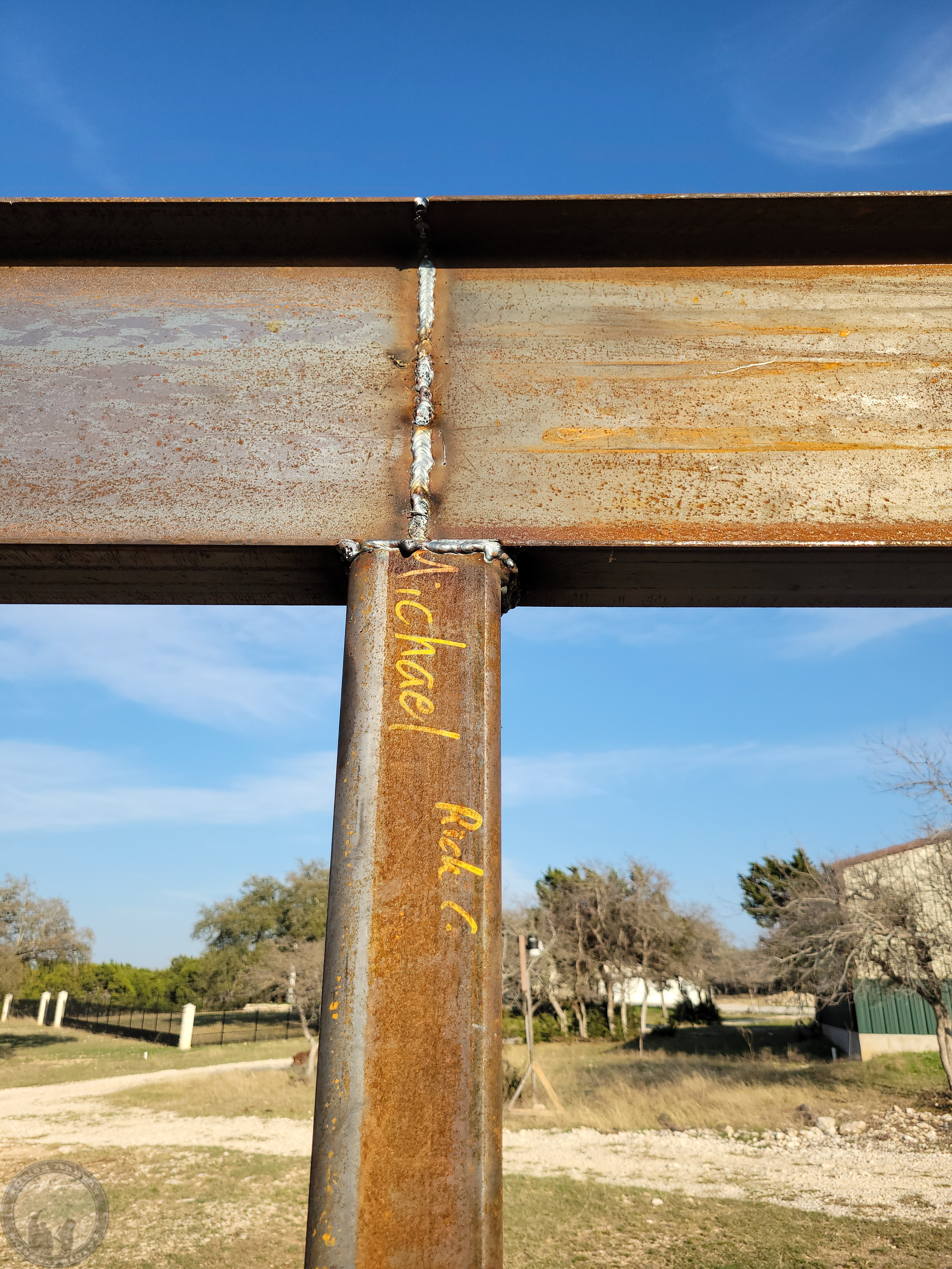 Putting a full bead along the inside of the beam seams.