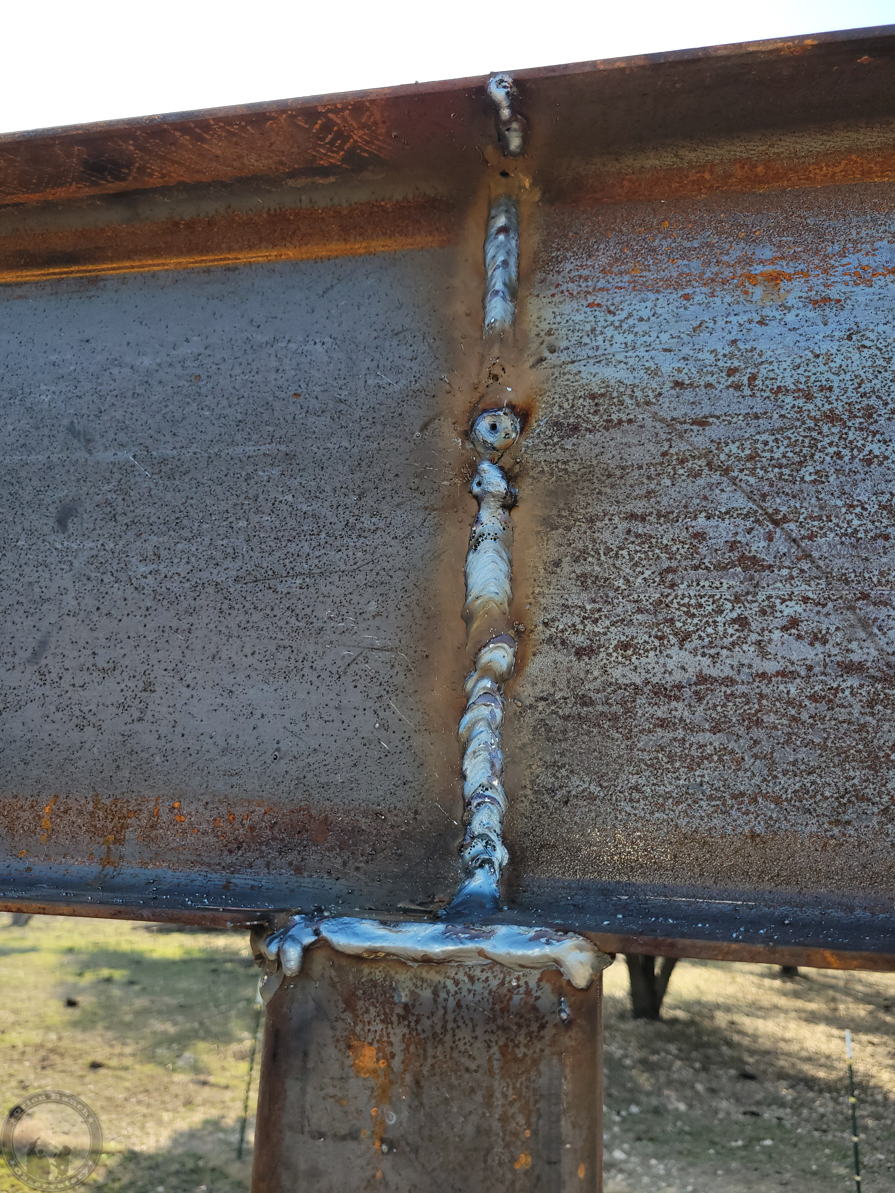 Putting a full bead along the inside of the beam seams.