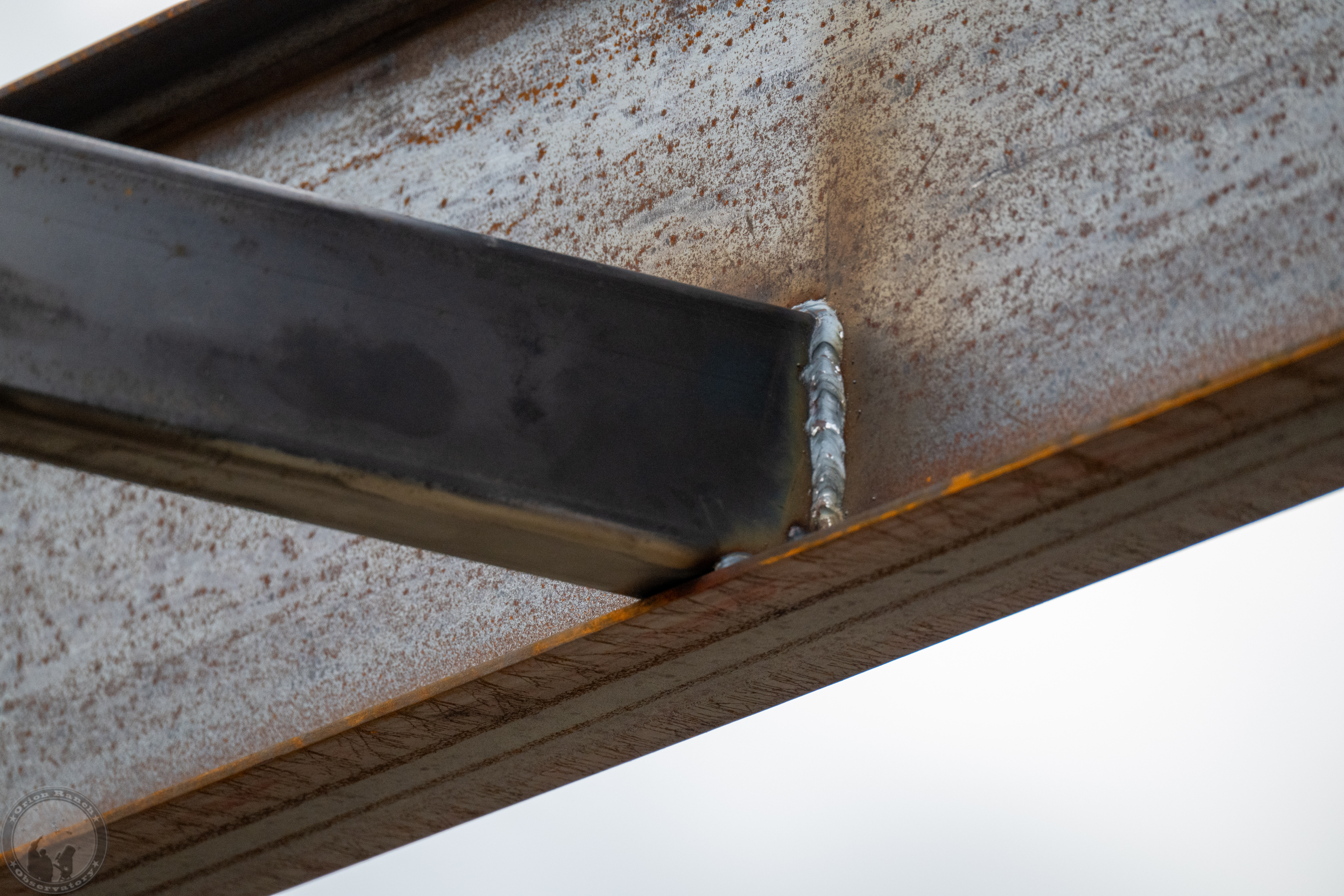 Various welds and seams between the beams and cross members.