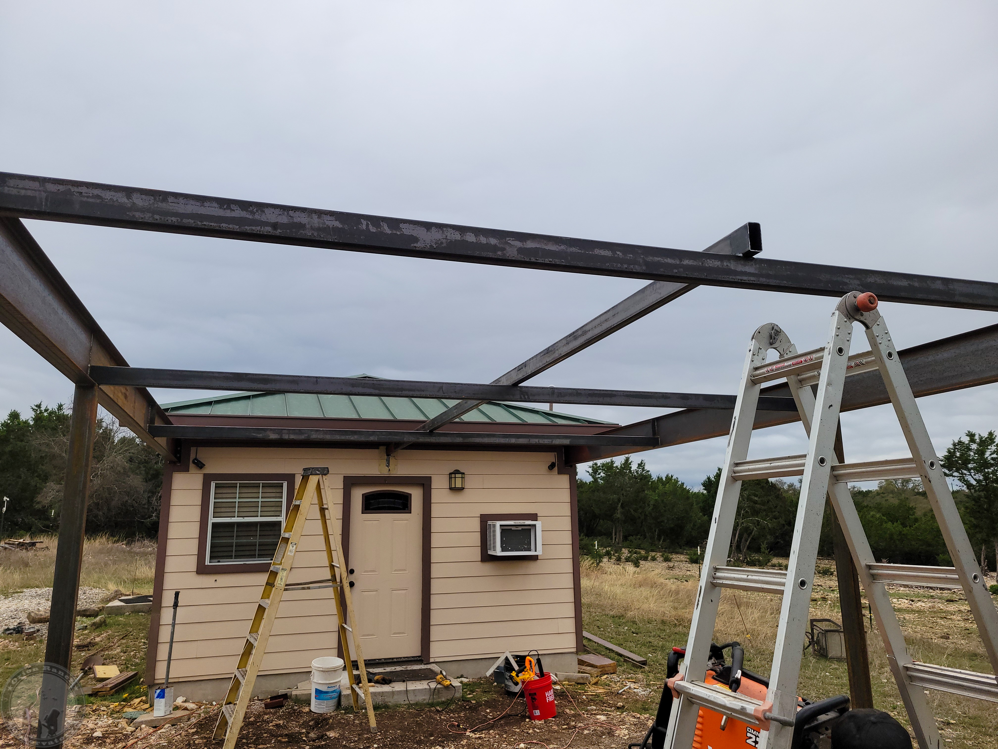 View of the first 24' centerline brace that comes out of the observatory wall.