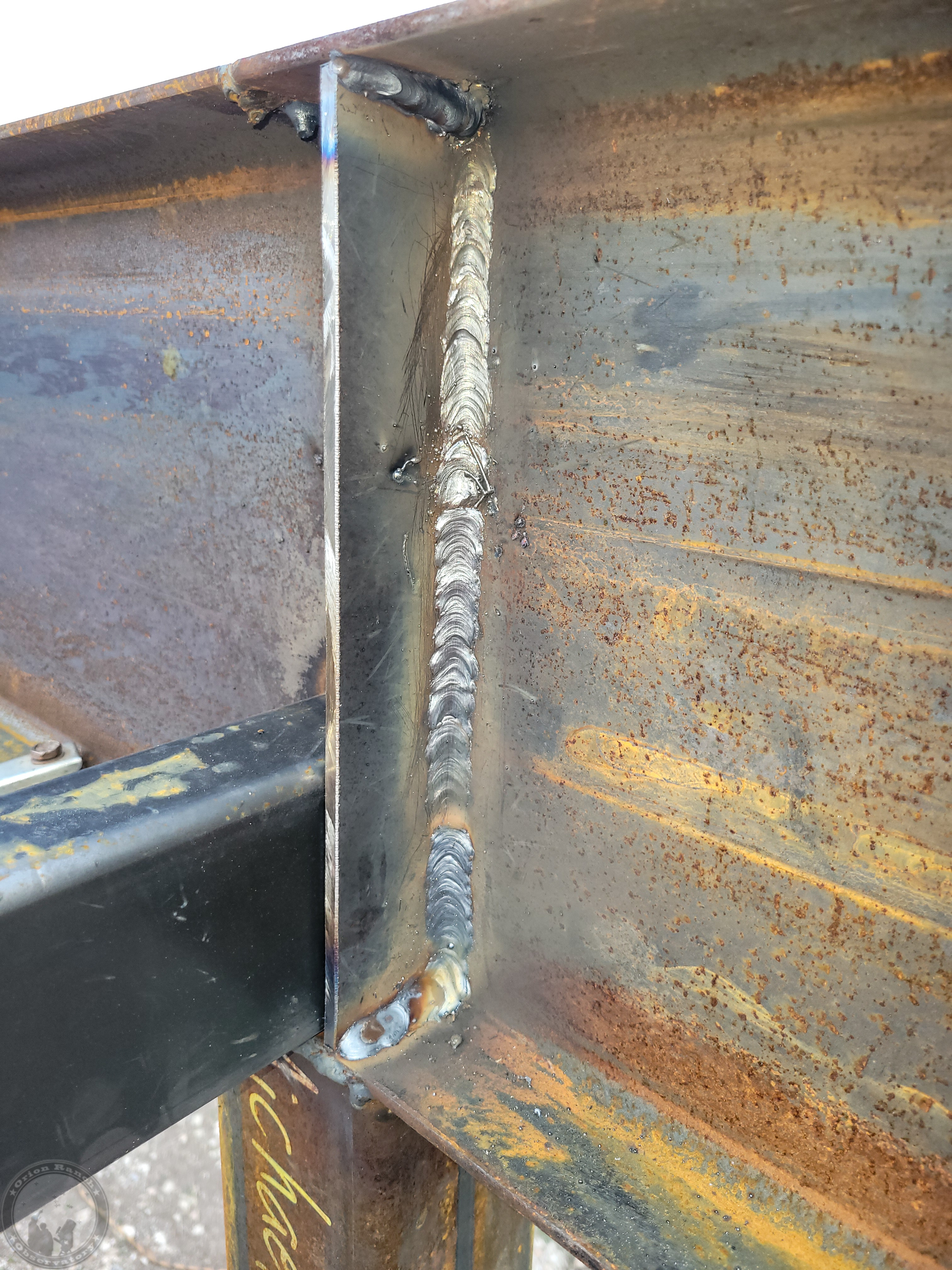 I spent a bunch of time grinding the web stiffeners into shape and got one installed before it got too dark.