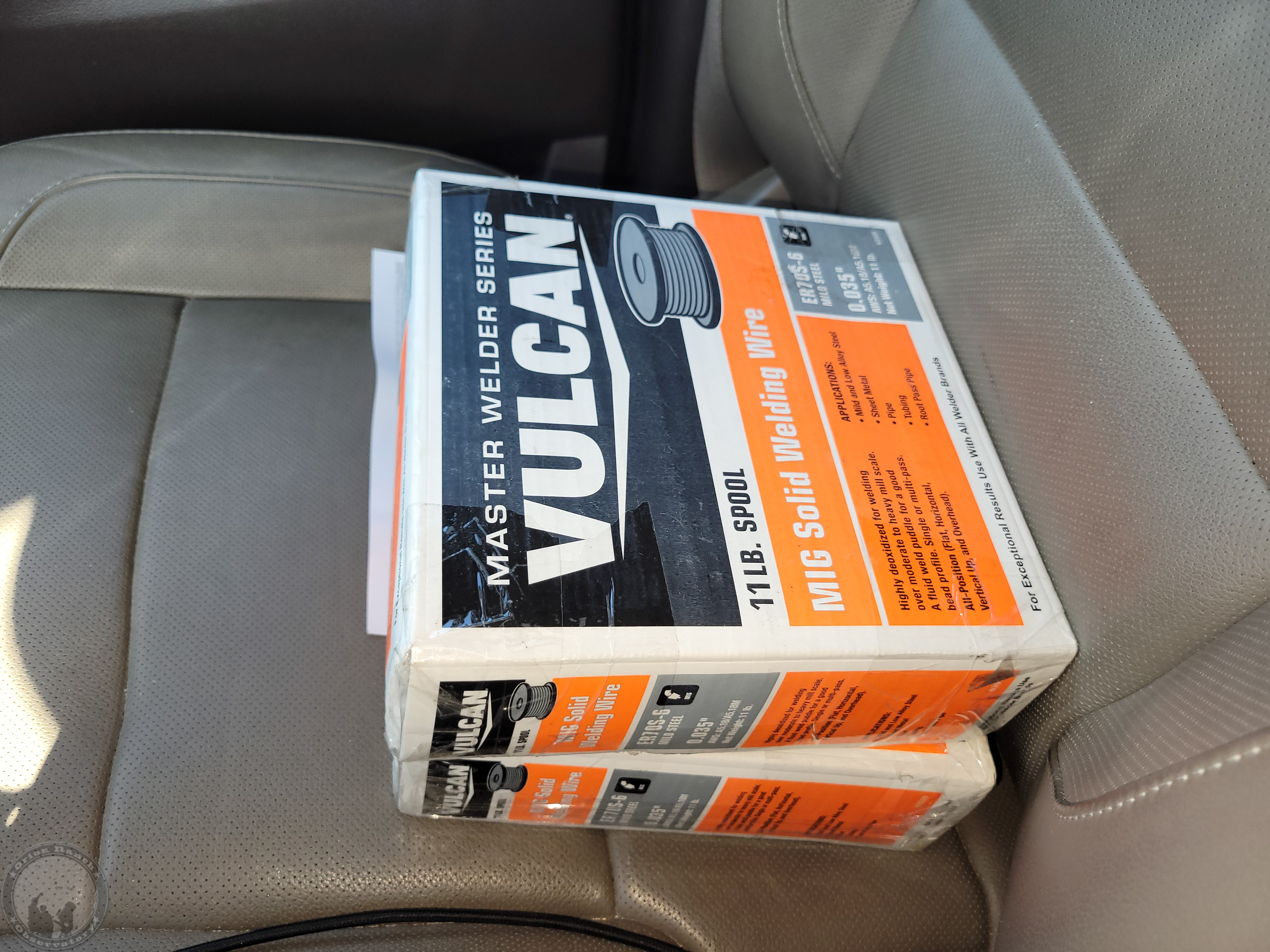 So unfortunately, I had to take an hour or two and run into town to Harbor Freight in order to buy some new rolls of welding wire.