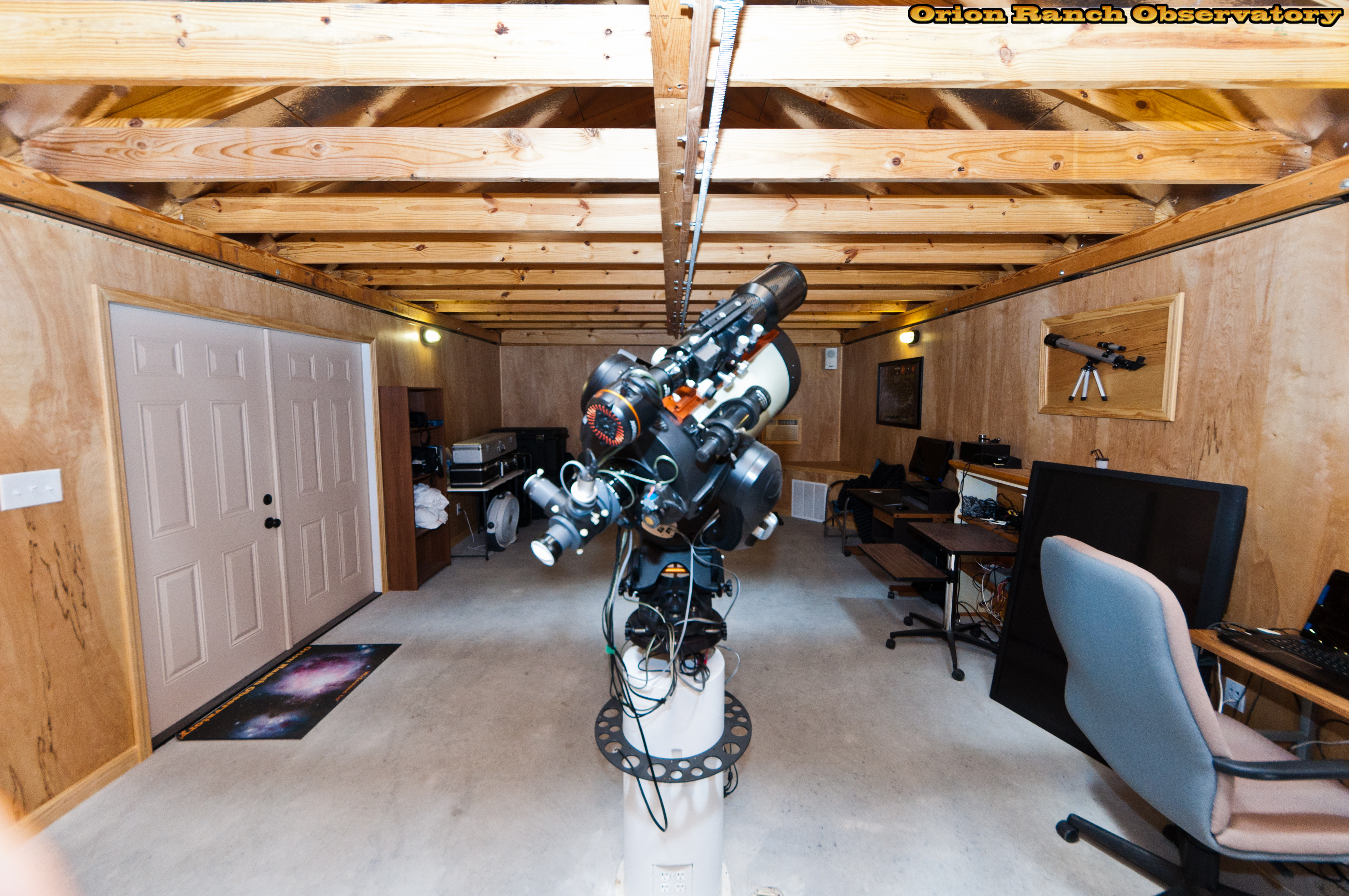 Various views around the observatory showing the 11" Edge HD with the AT80LE piggy-backed for imaging. The Sky Watcher ED-100 is piggybacked on the 11" NexStar GPS we use for visual observing with the Williams Optics binoviewer.