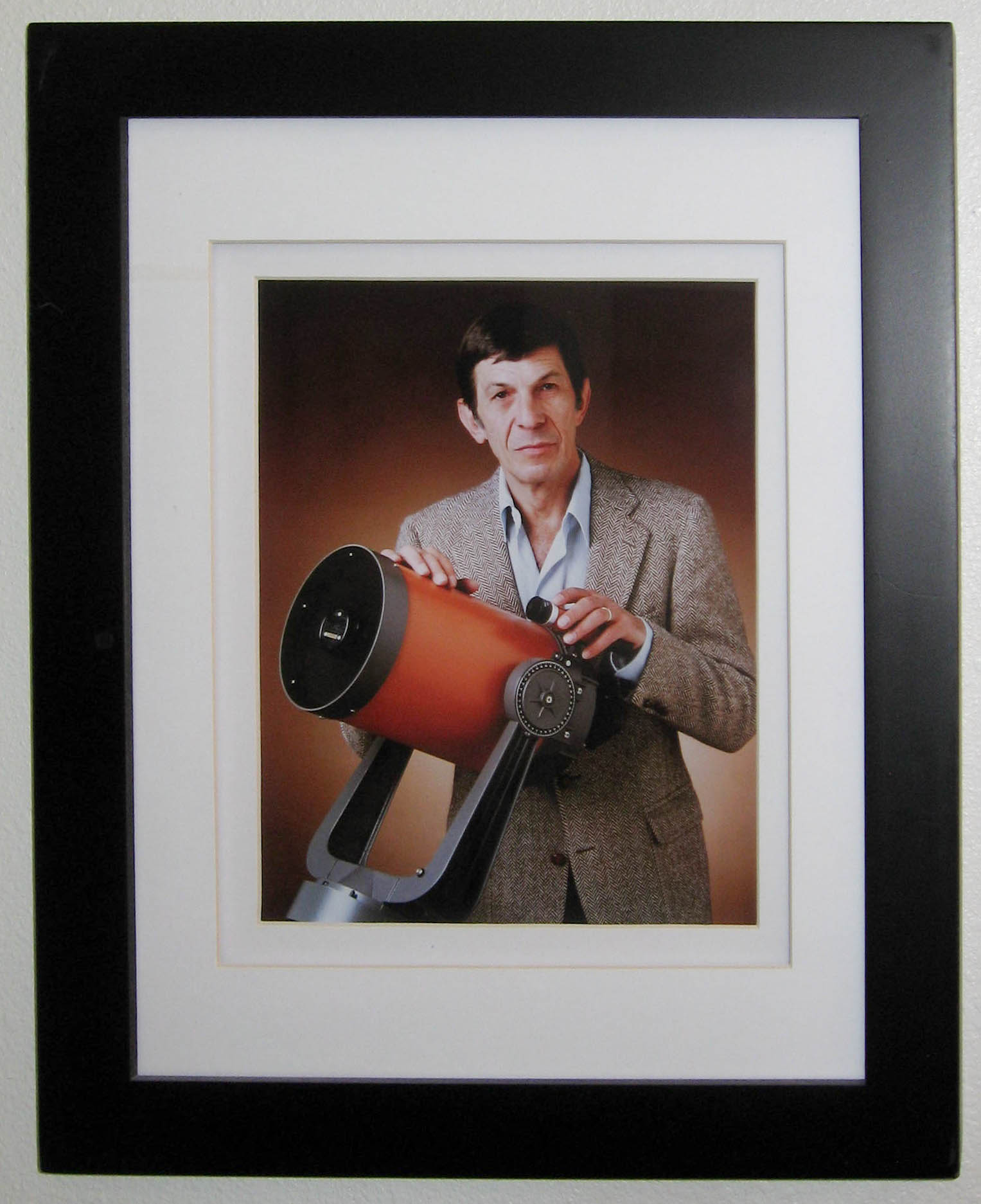 Photo of Leonard Nimoy (Mr. Spck of Star Trek fame) in front of a Celestron C8, Circa 1980)