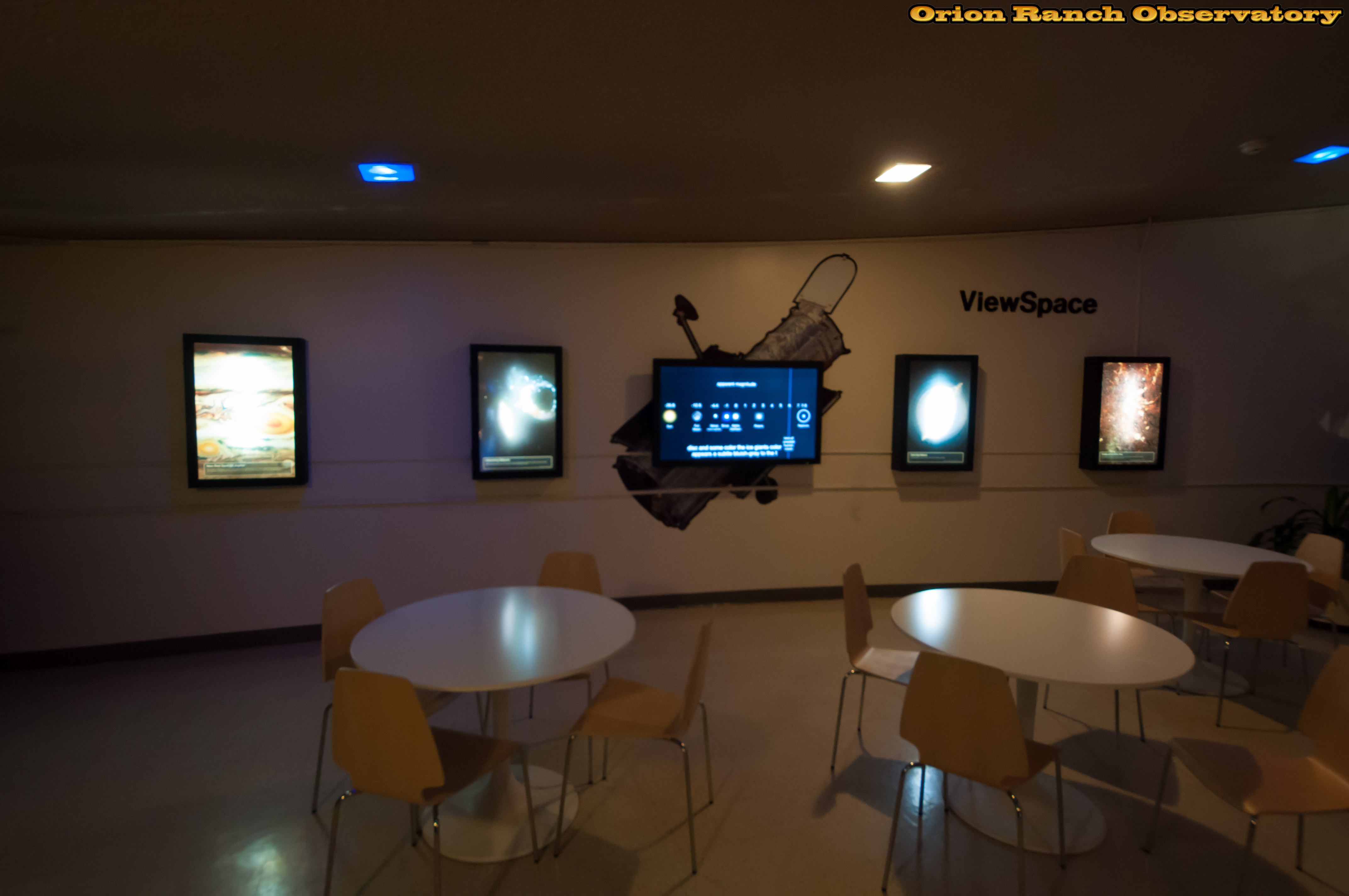 Various views of the area outside the planetarium dome on the first floor. Ther are classroom areas behind this.