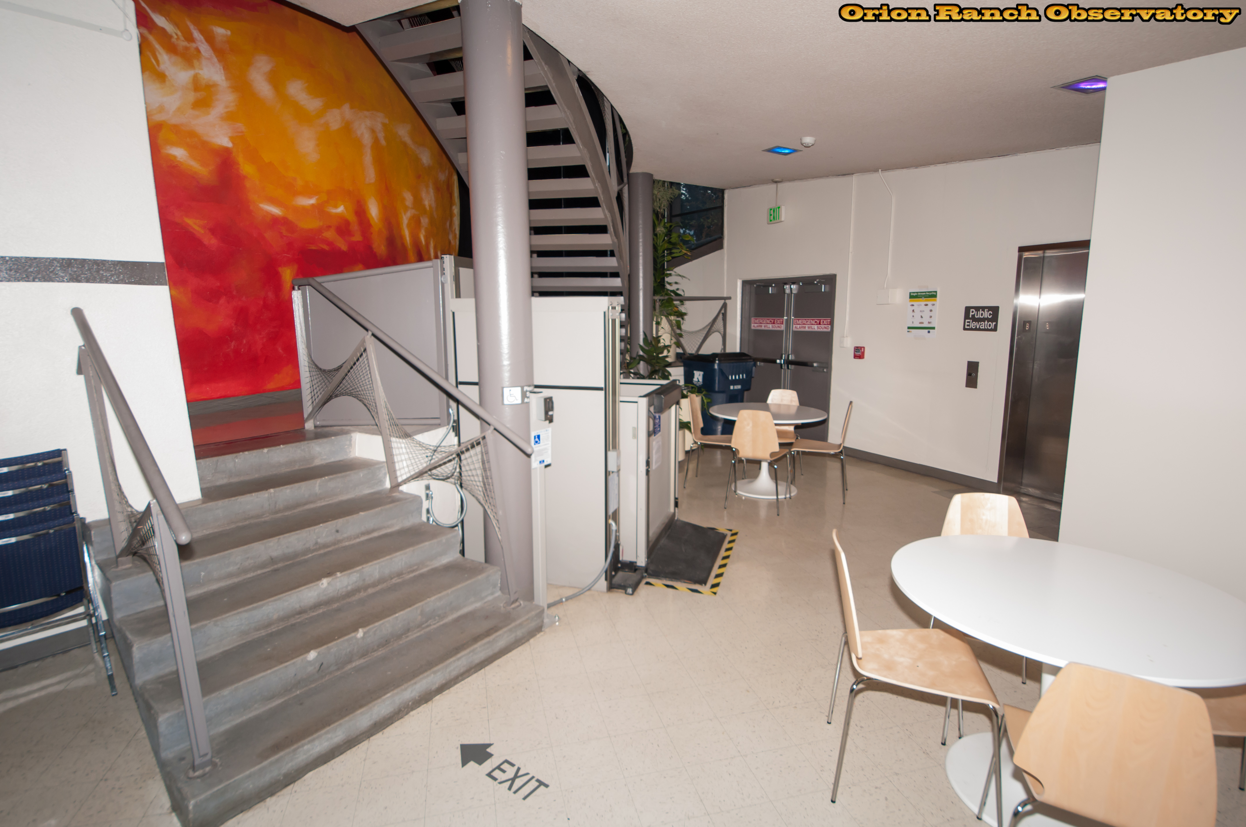 Various views of the area outside the planetarium dome on the first floor. Ther are classroom areas behind this.