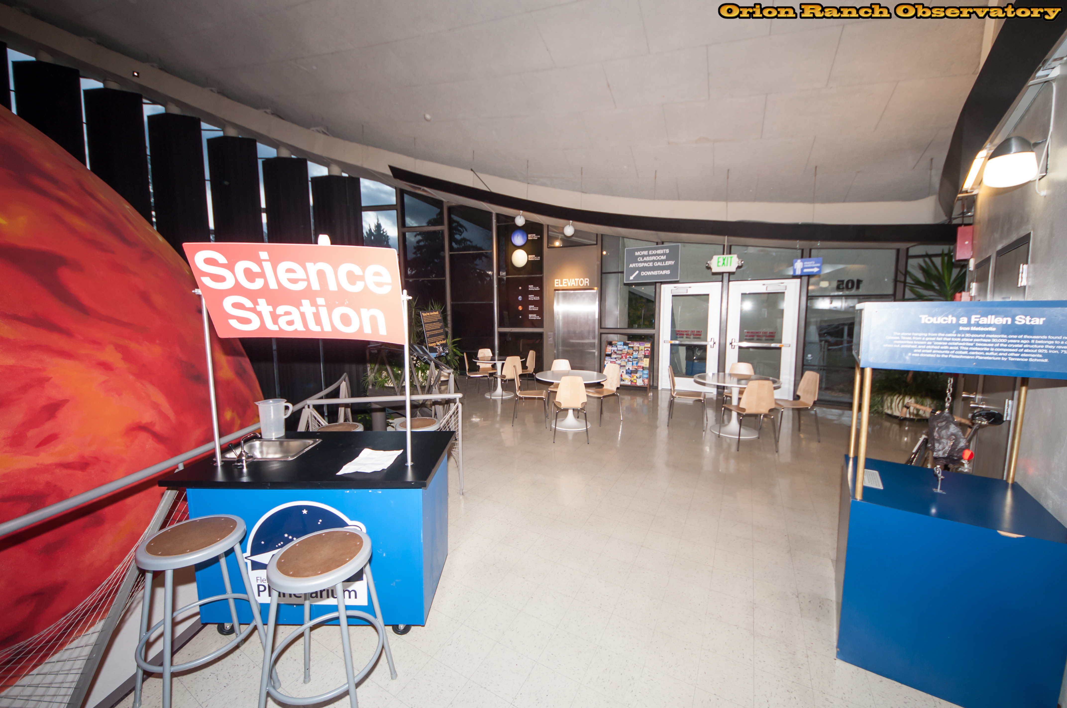 Open area on the second floor showing the planetarium dome, whcih is painted to represent the sun. Note the planet decals on several of the tables.