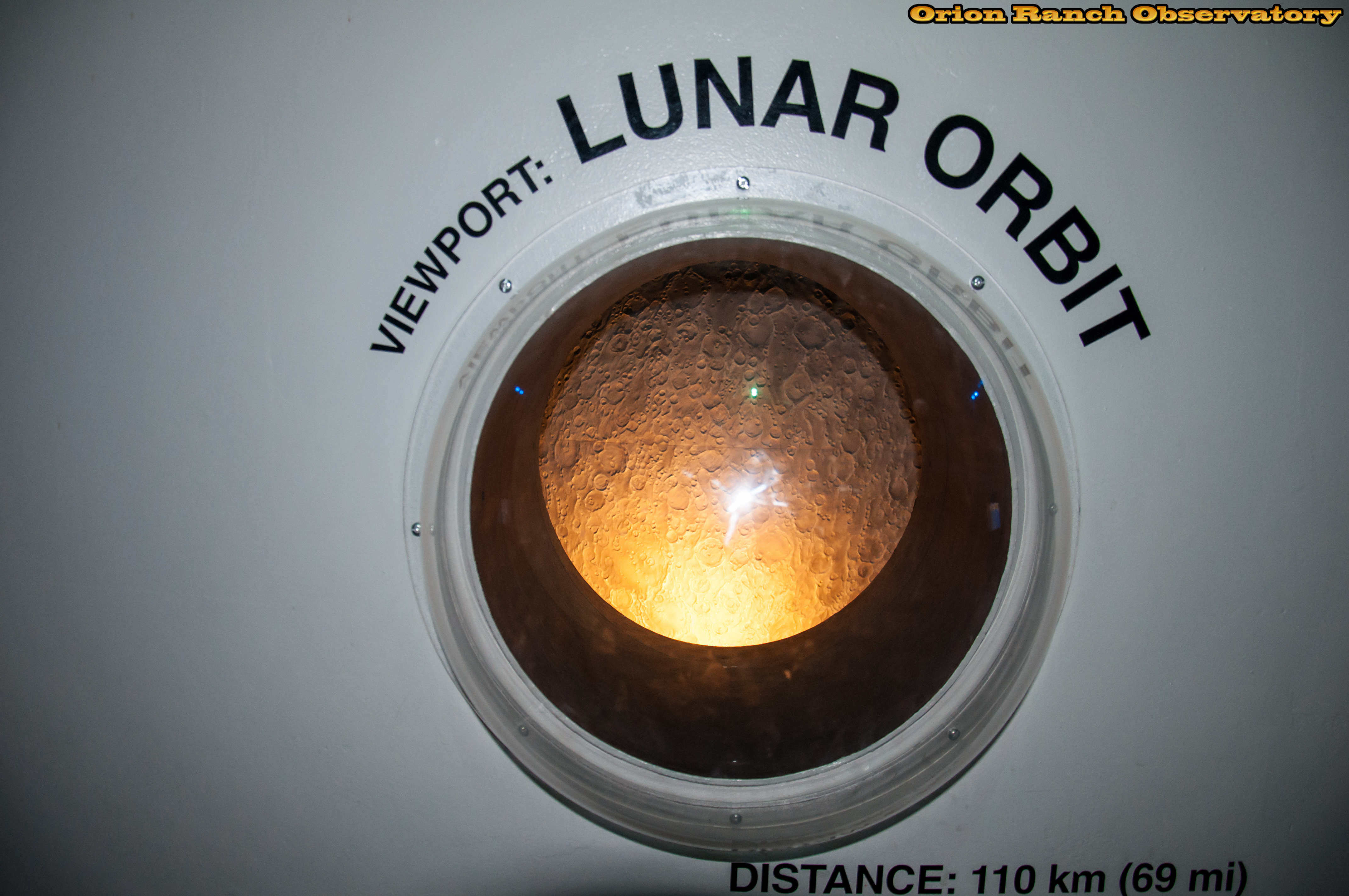 The various portholes in the entrance wall point to several of the paintings across the exhibit far wall. Most are just PVC pipe in the wall, but the central one gives a vew of orbiting the moon as the globe rotates.