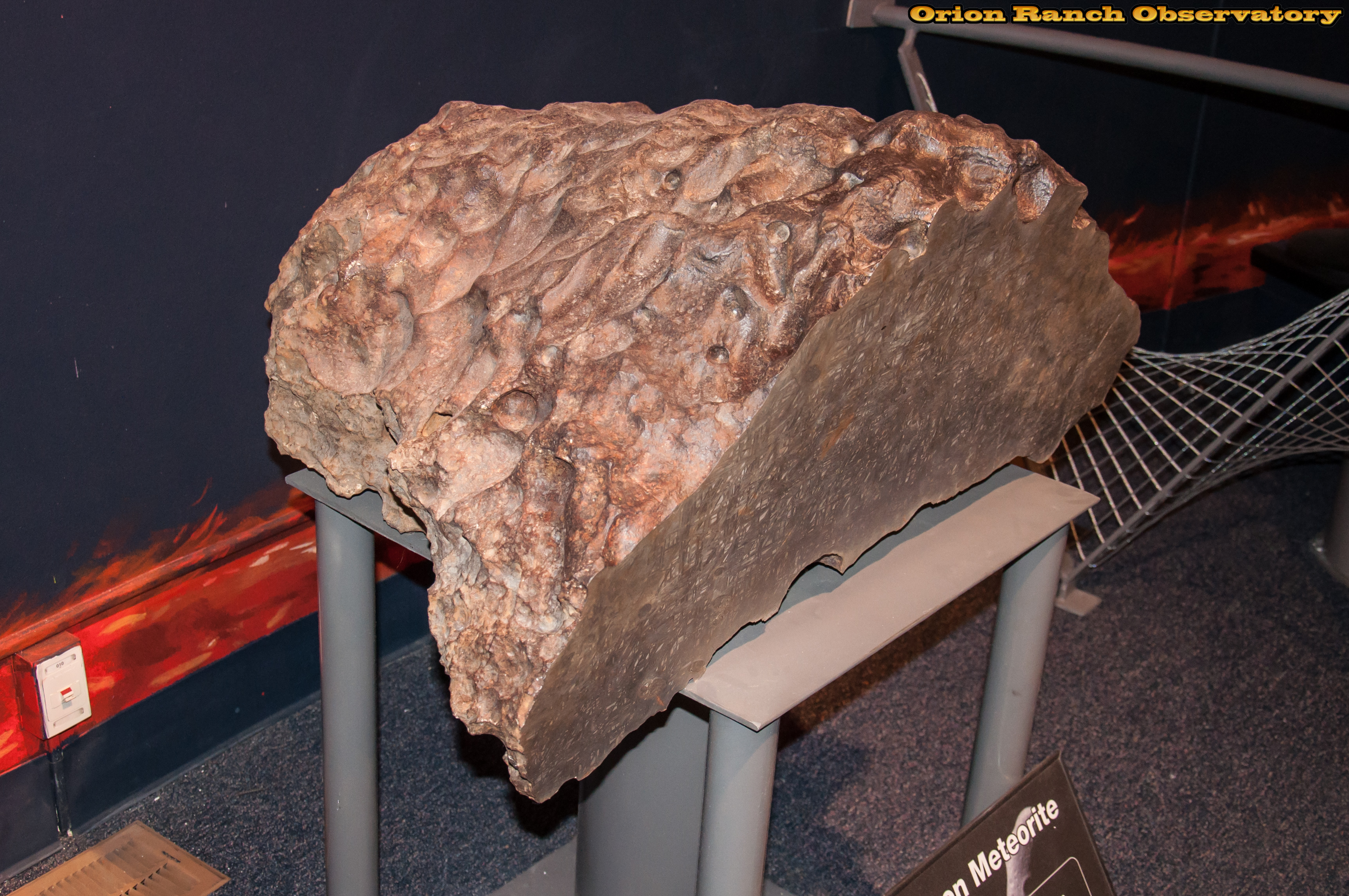 A massive one ton piece of meteorite is the centerpiece of a large display of meteorites.
