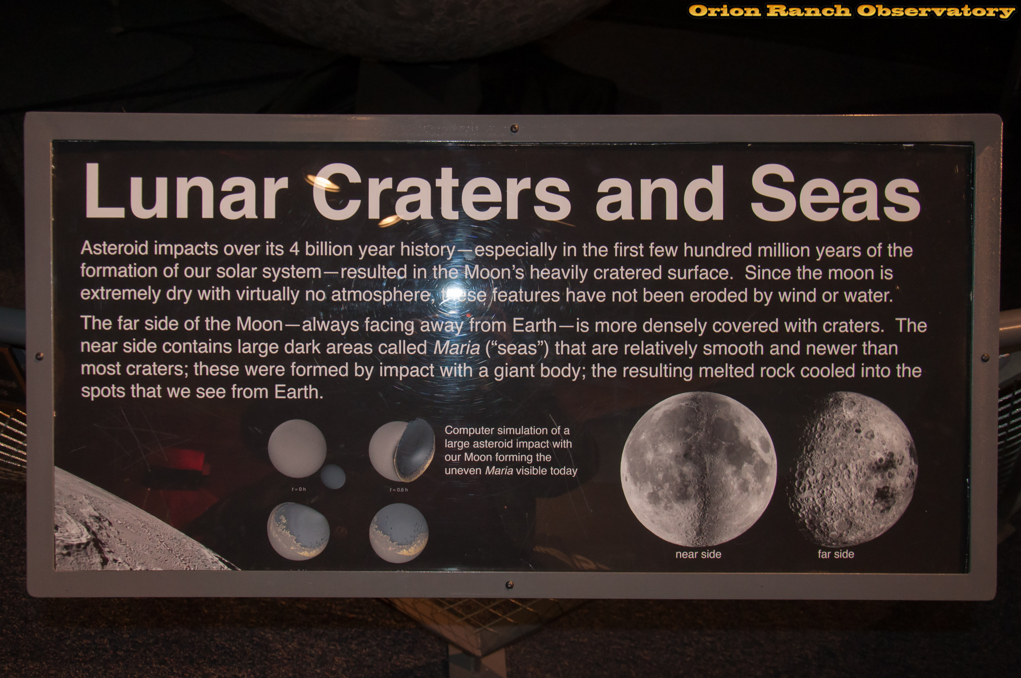 A second large relief globe, this time of our Moon, dominates the center of the room. Flags mark the location of lunar landings.