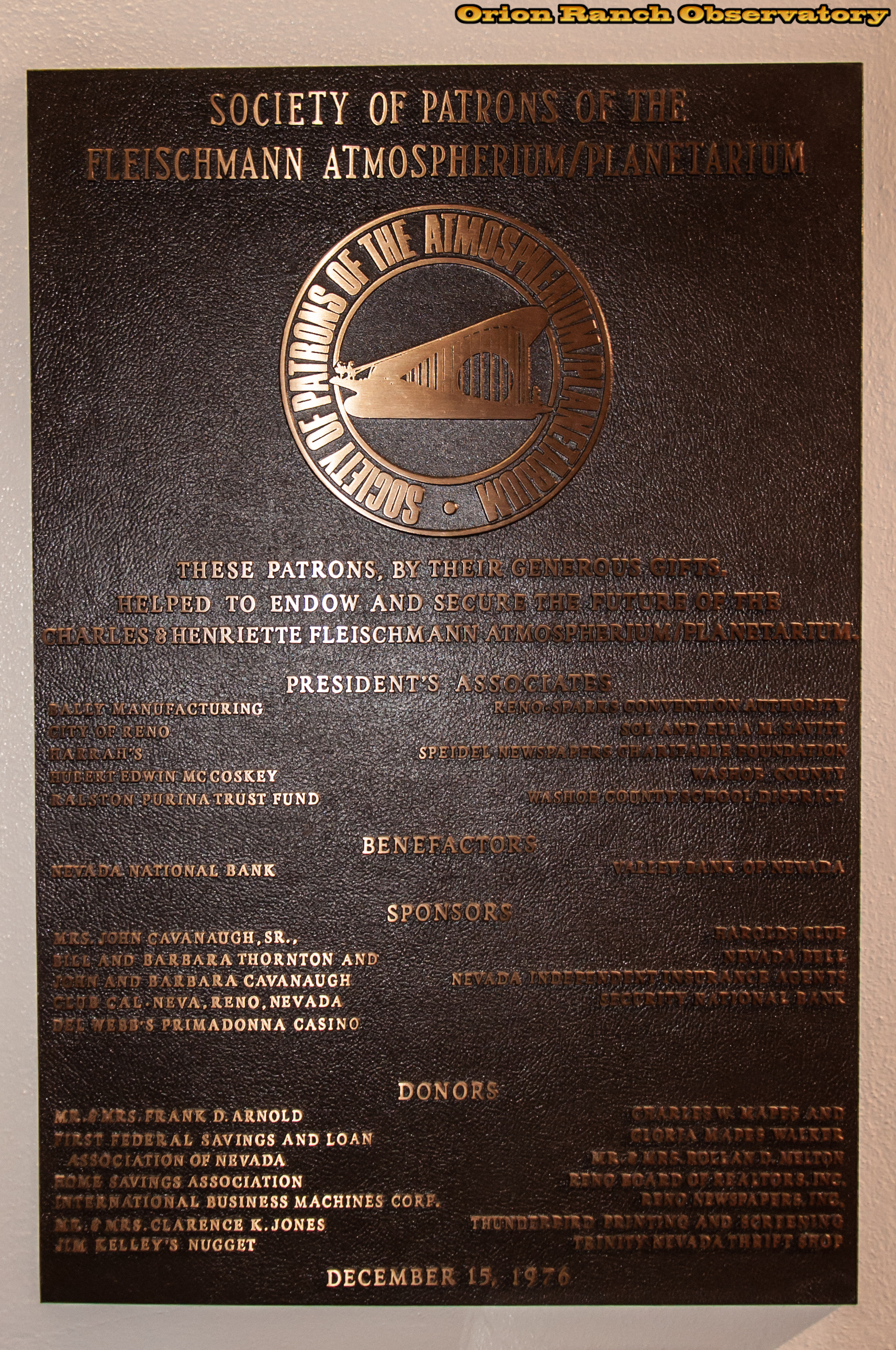 This brass dedication plaque is on the back wall outside the exhibits.