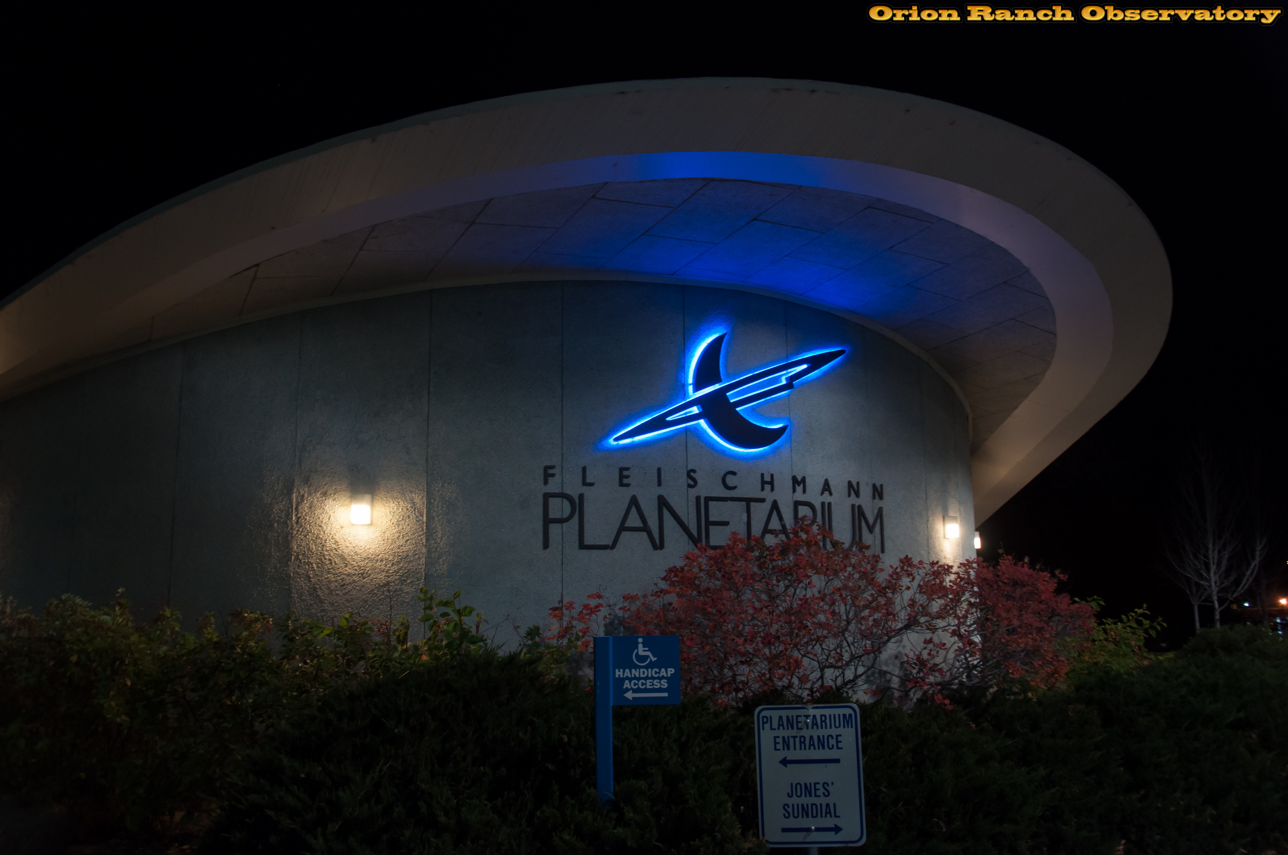 Exterior view of the Fleischmann Planetarium from the up-hill side as you exit the parking garage. The entrance is to the left.