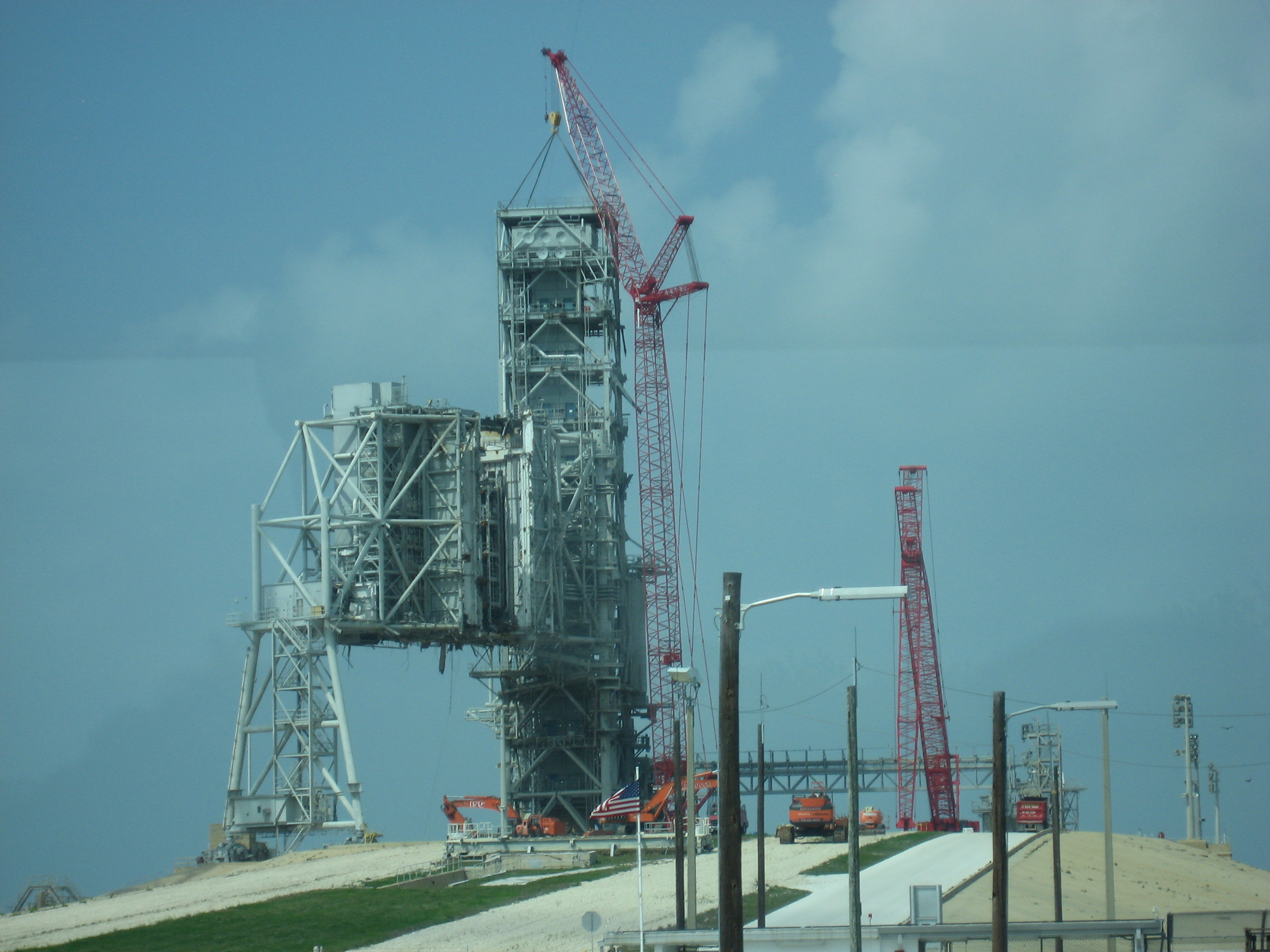 Shuttle launch pad B being disassembled due to the cancelation of the US Space Shuttle program. Half gone already.