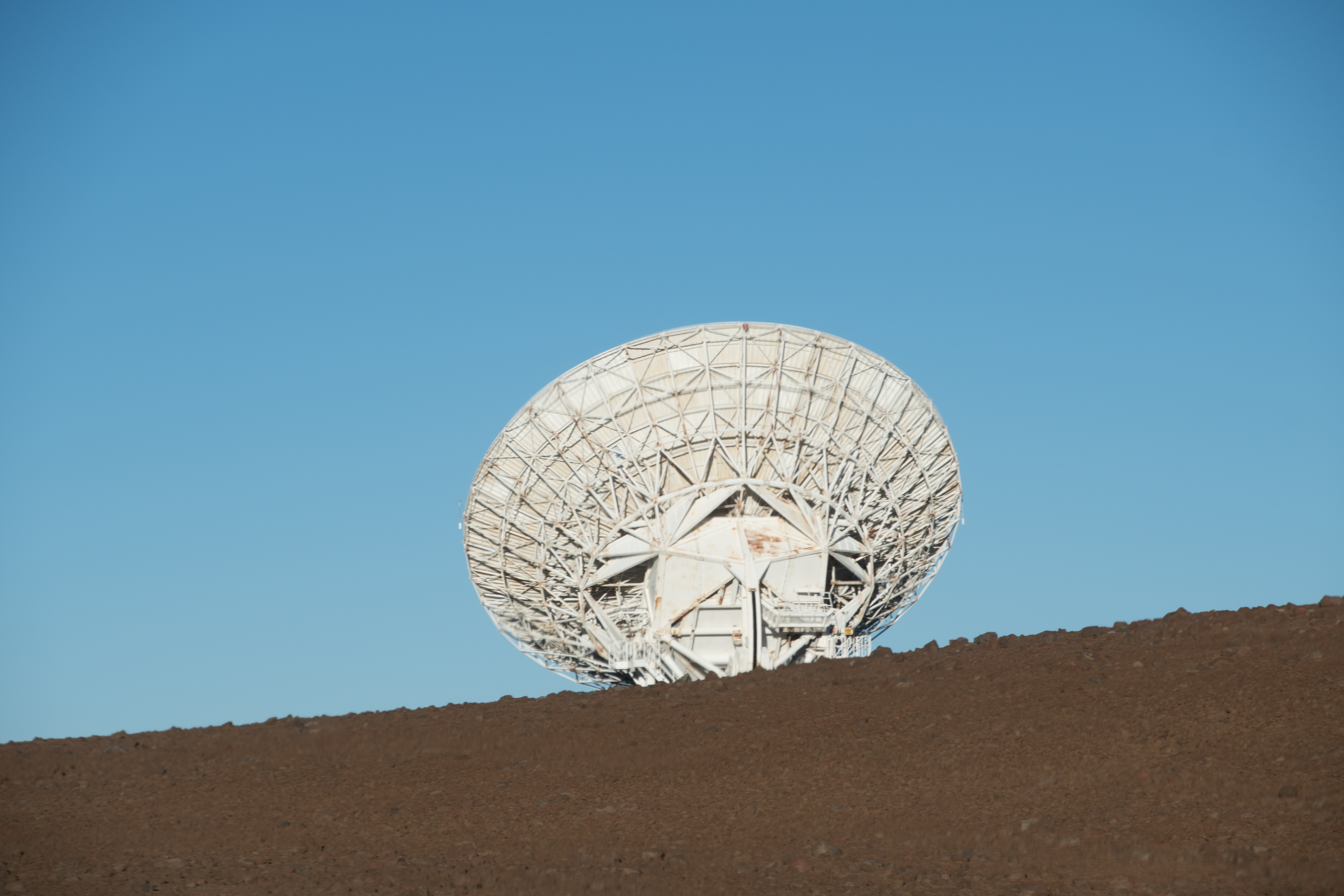 Driving up to the Very Long Baseline Array antenna dish below the summit.
