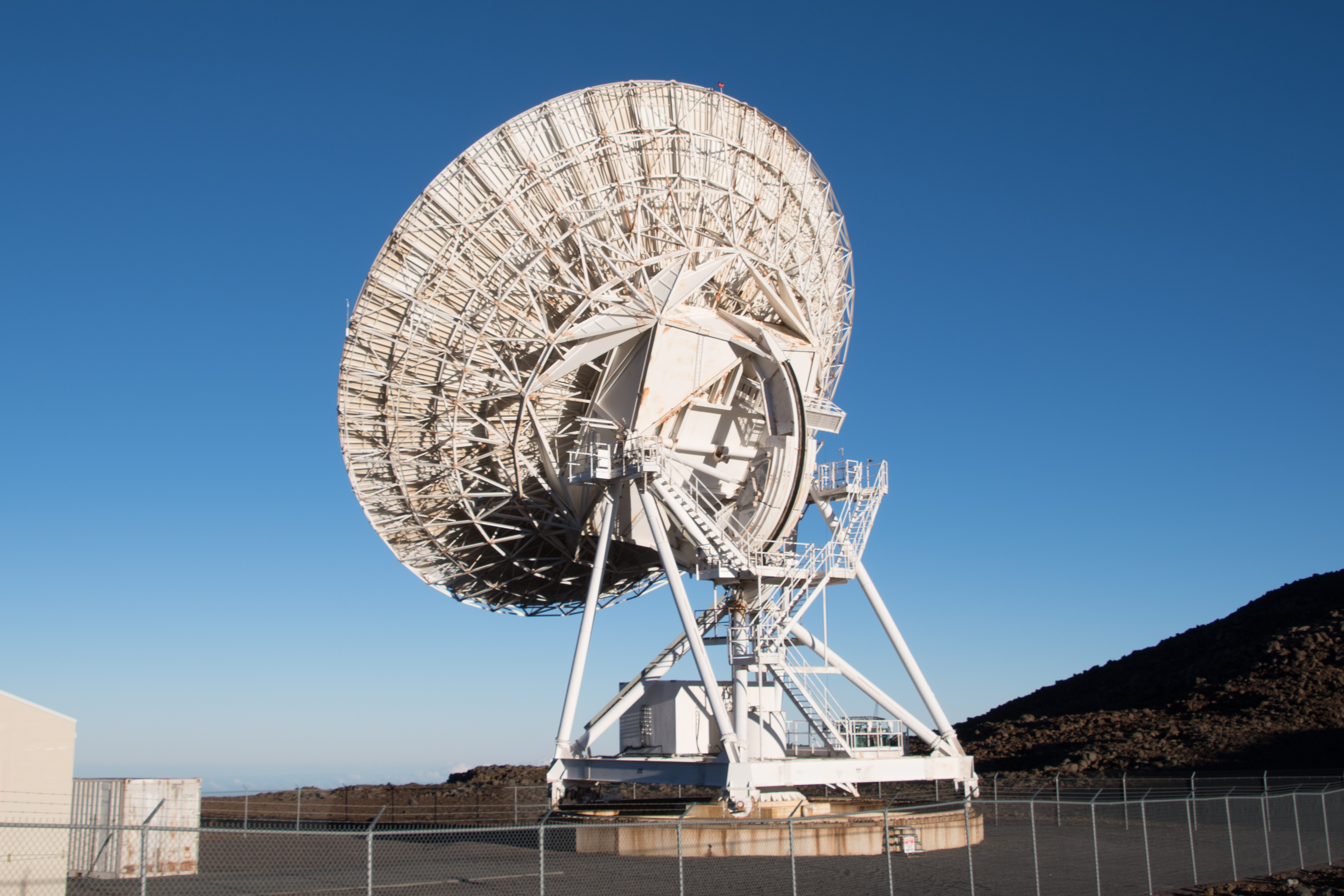 Various views of the Very Long Baseline Array antenna dish below the summit.