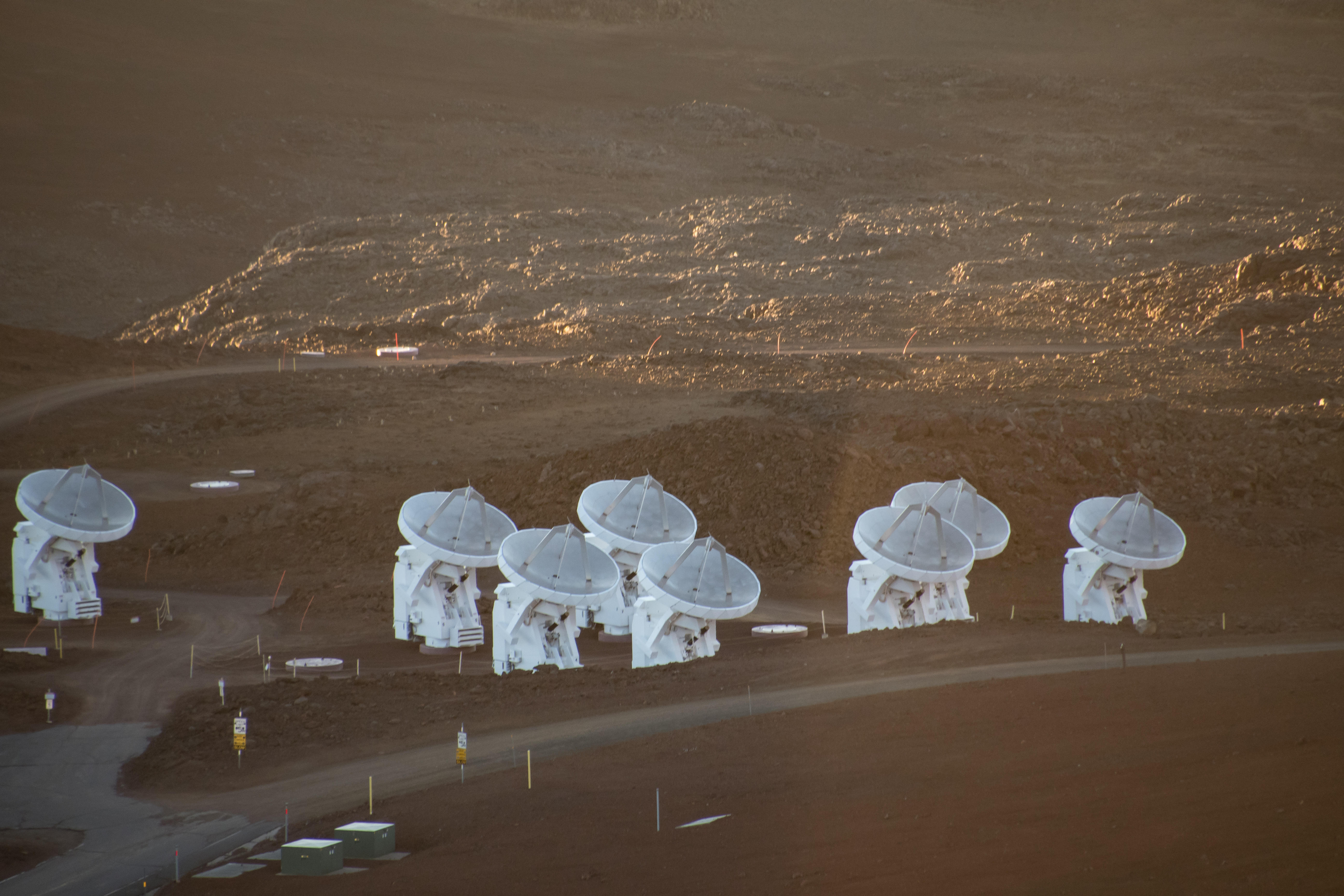 The Submillimeter Array (SMA) consists of eight 6-meter (20 ft) diameter radio telescopes arranged as an interferometer for submillimeter wavelength observations.