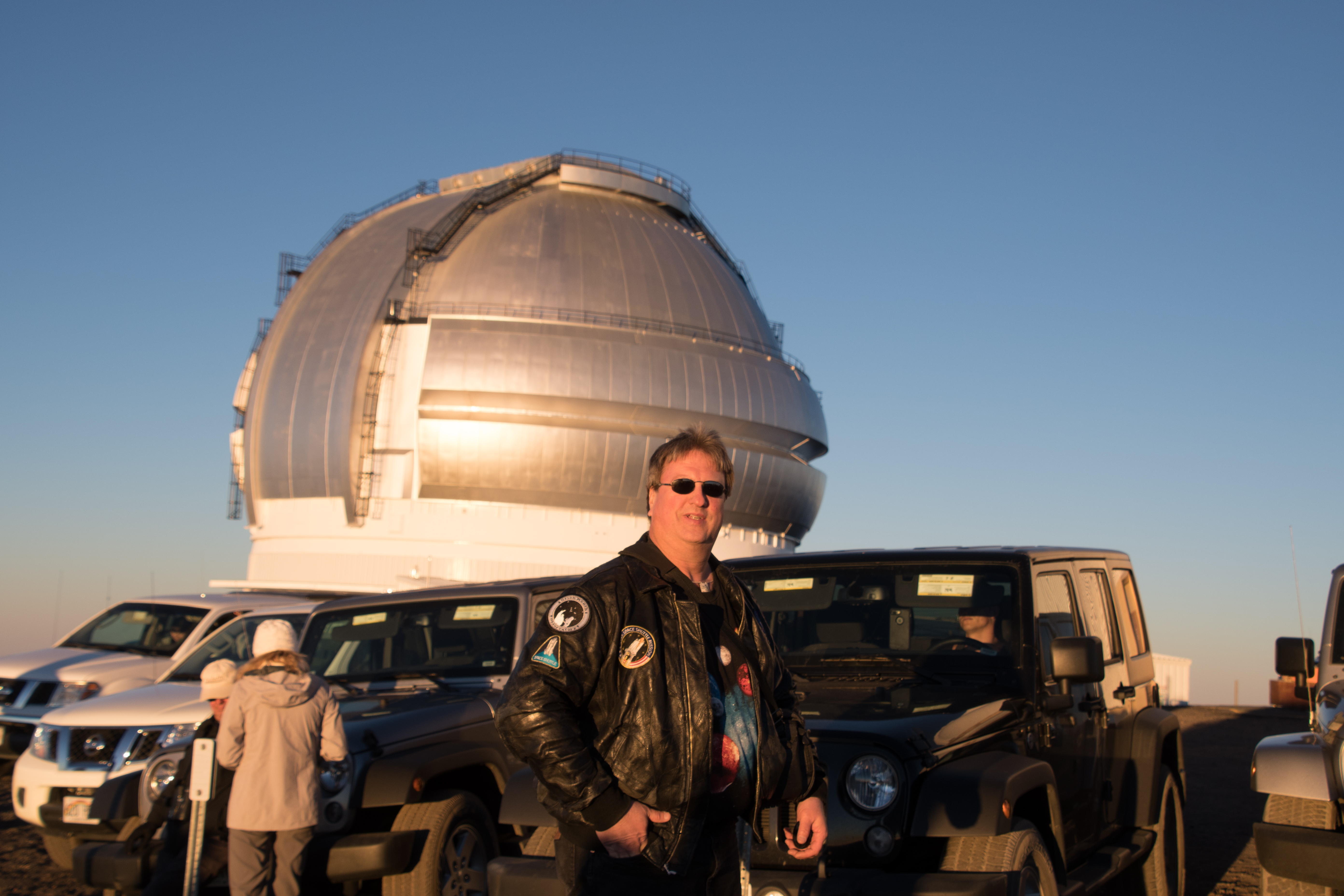 Taking a couple of pictures in front of the Gemini North Telescope. Now if I could just quit grimacing at the camera. I smile like Chandler.