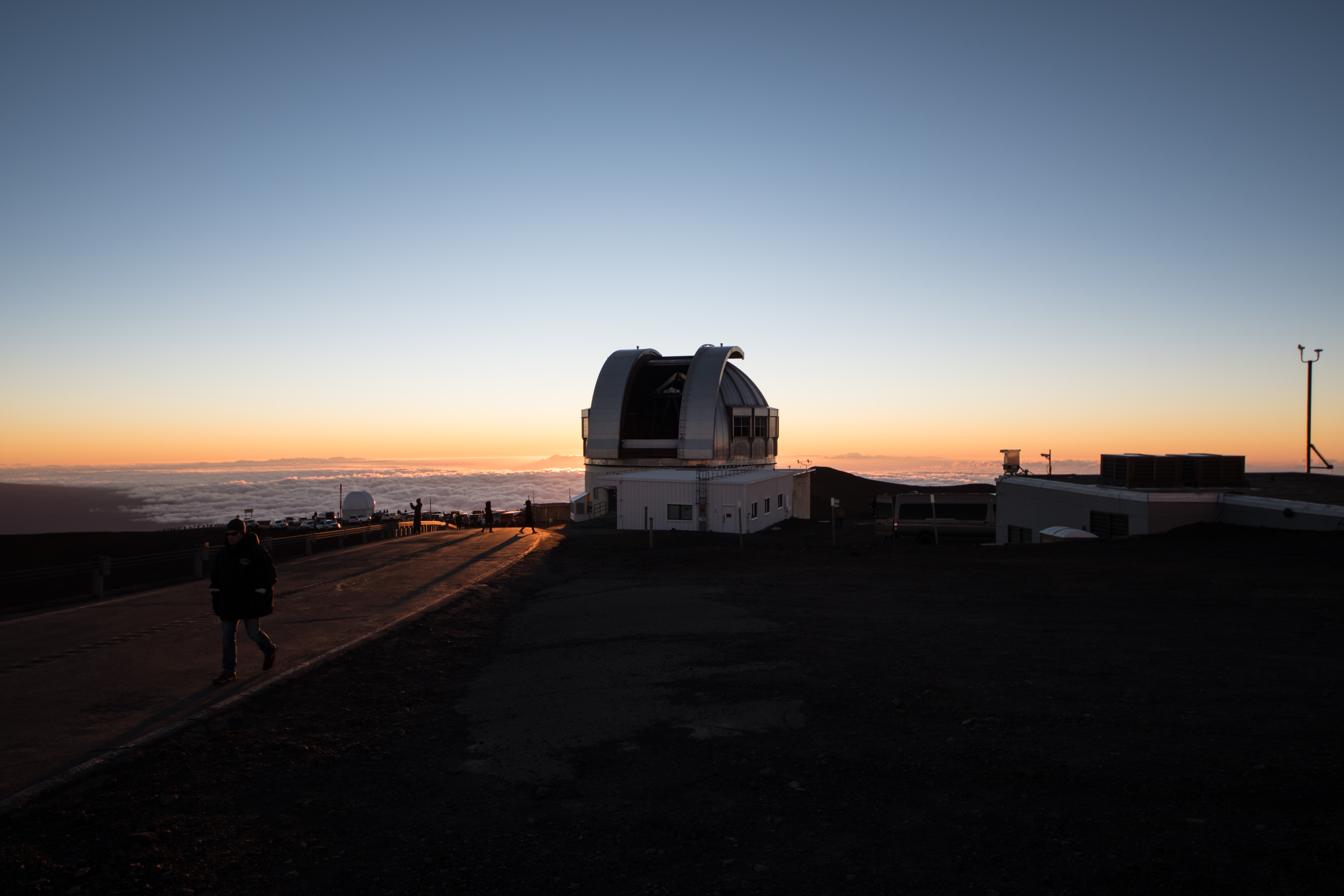 This wide field shot has the Sun eclipsed behind the UK Infrared Telescope. This is the only other shot that shows the decommissioned UH Hilo Educational Telescope on the left side, along the road leading to the summit.