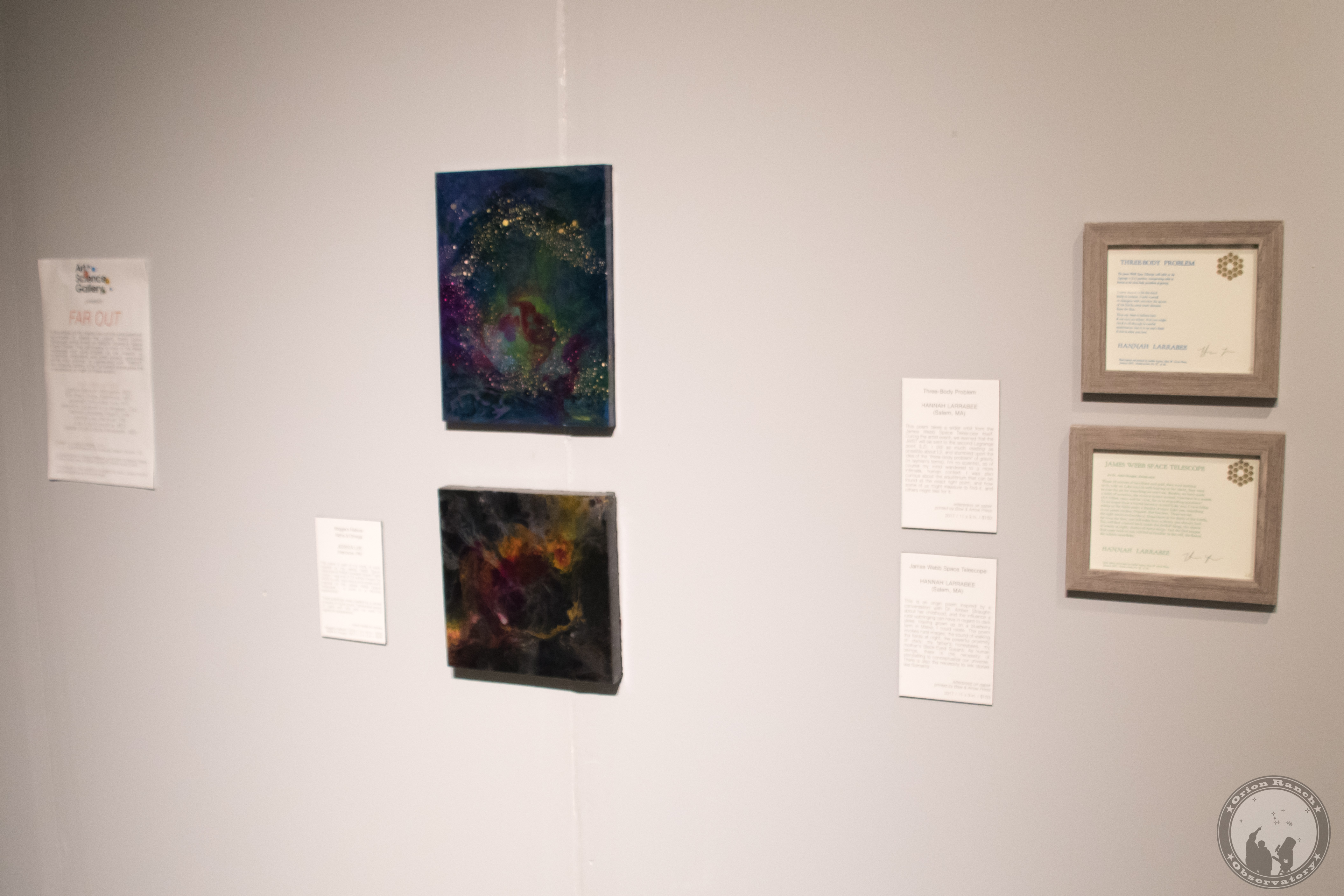 Exhibit of various artwork on the James Webb Space Telescope.