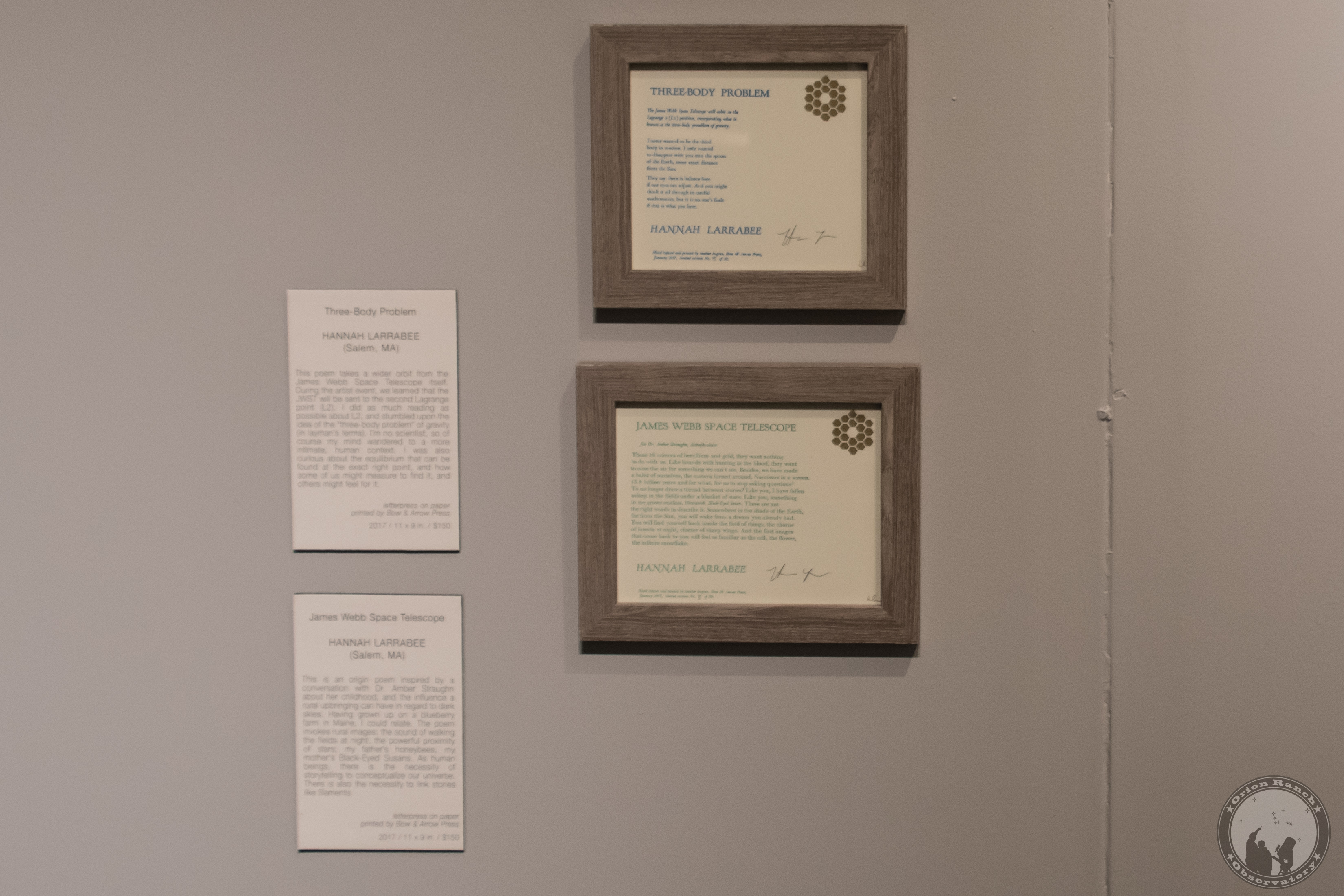 Exhibit of various artwork on the James Webb Space Telescope.