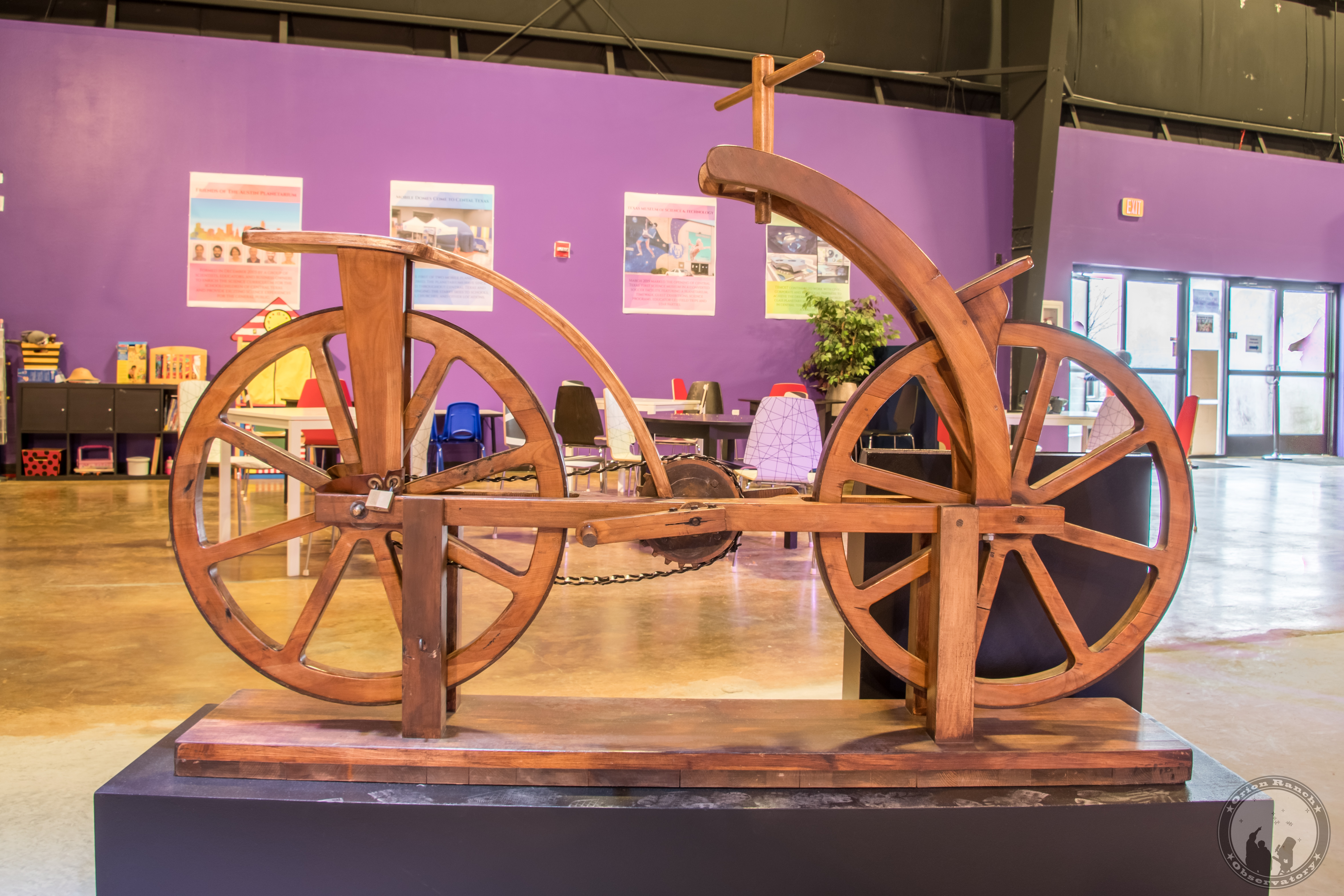 This bicycle was based on a sketch found in Leonardo's Madrid Codex, but Leonardo probably didn't draw it. No one knows who drew it, but perhaps it was done by a student copying his master's design, or perhaps it is a later forgery. In any case, bicycles didn't appear until the 19th century, making this drawing a tantalizing mystery.