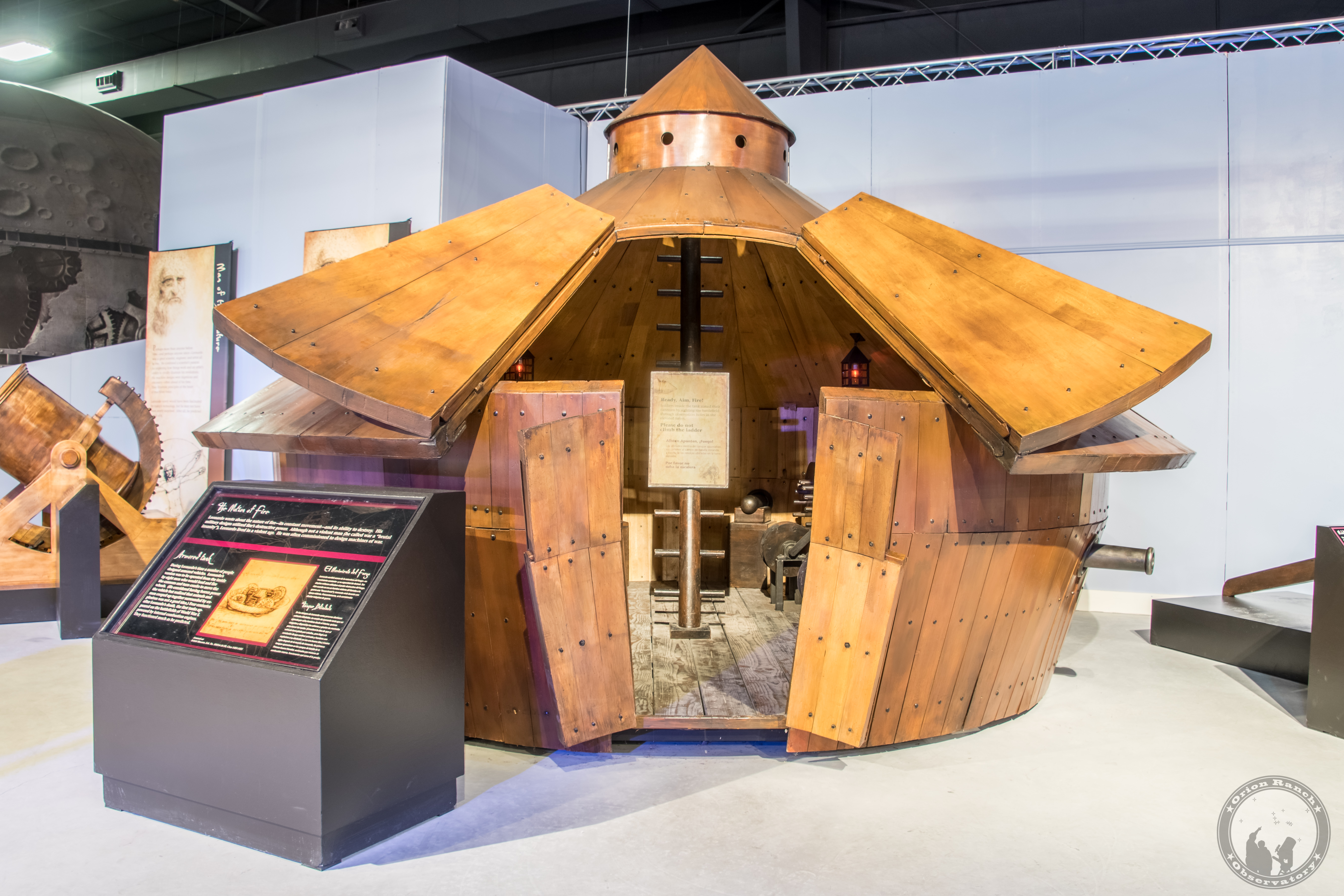 During Leonardo's time, a number of people designed armored vehicles. Leonardo's version was to be operated from teh inside by eight men who would load and fire the cannons and turn cranks to move the wheels.
