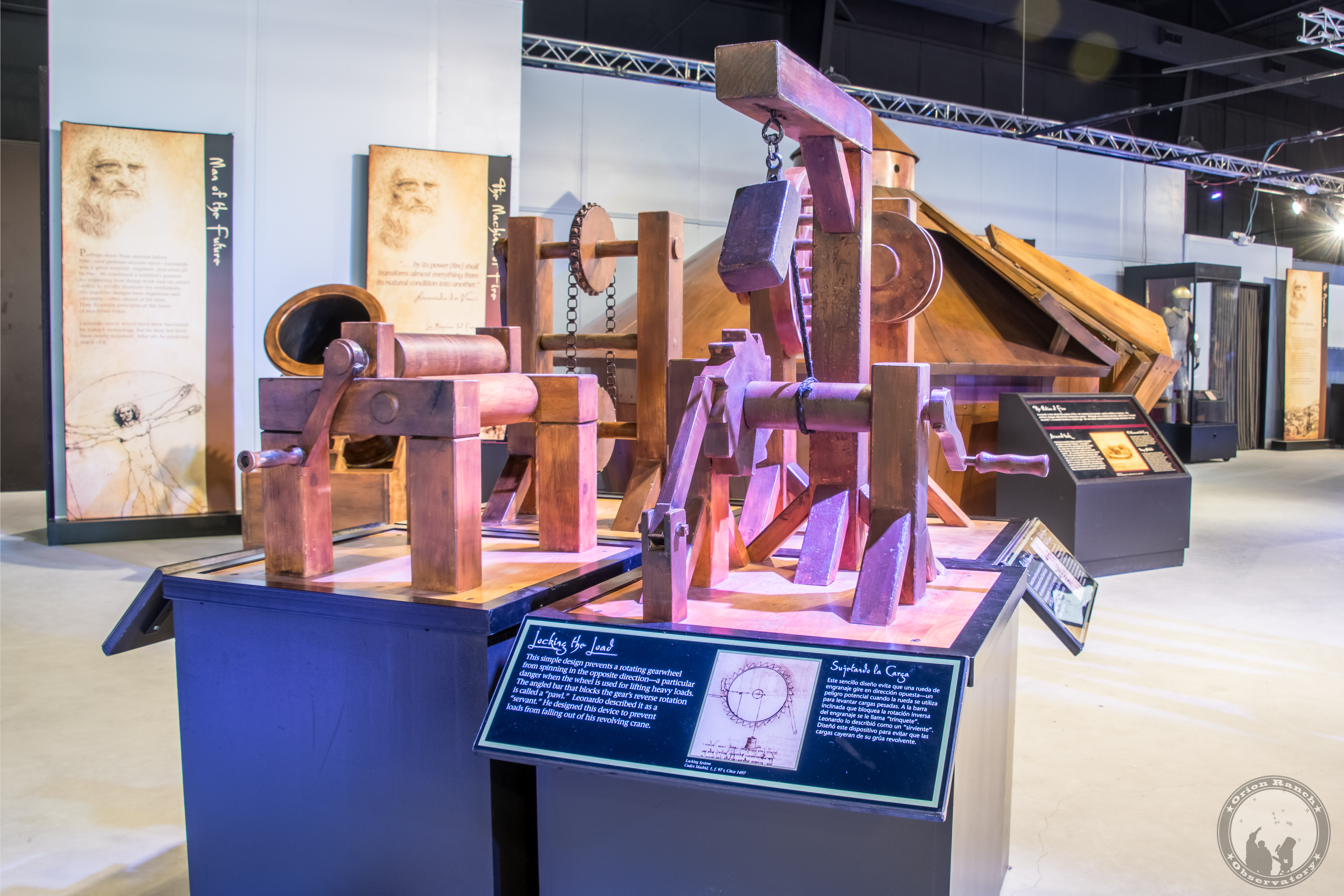 This simple design prevents a rotating gearwheel from spinning in the opposite direction--a particular danger when the wheelo is used for lifting heavy loads. The angled bar that blocks the gear's reverse rotation is called a "pawl." Leonardo described it as a "servant." He designed this device to prevent loads from falling out of his revolving crane.