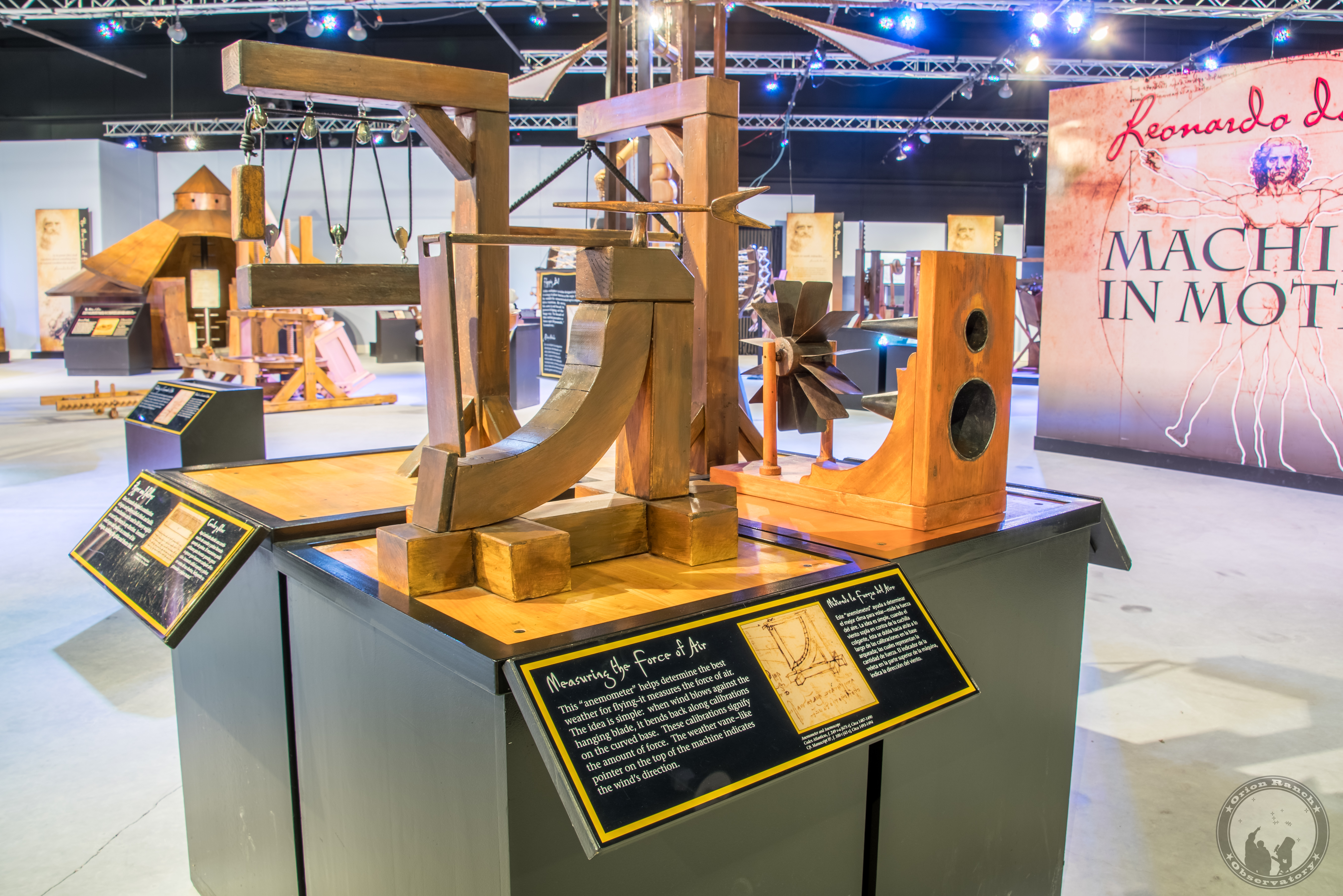 In the background, a second style of anemometer measures air force and speed and can also be used to measure water force. When air rushes in through one of the horizontal cones, it spins the flapped wheel, lifting a weight connected to the wheel. The greater the force of air, the higher the weight is lifted. Today's weathermen (meteorologists), air traffic controllers and airport engineers measure wind speed, but with digital anemometers.