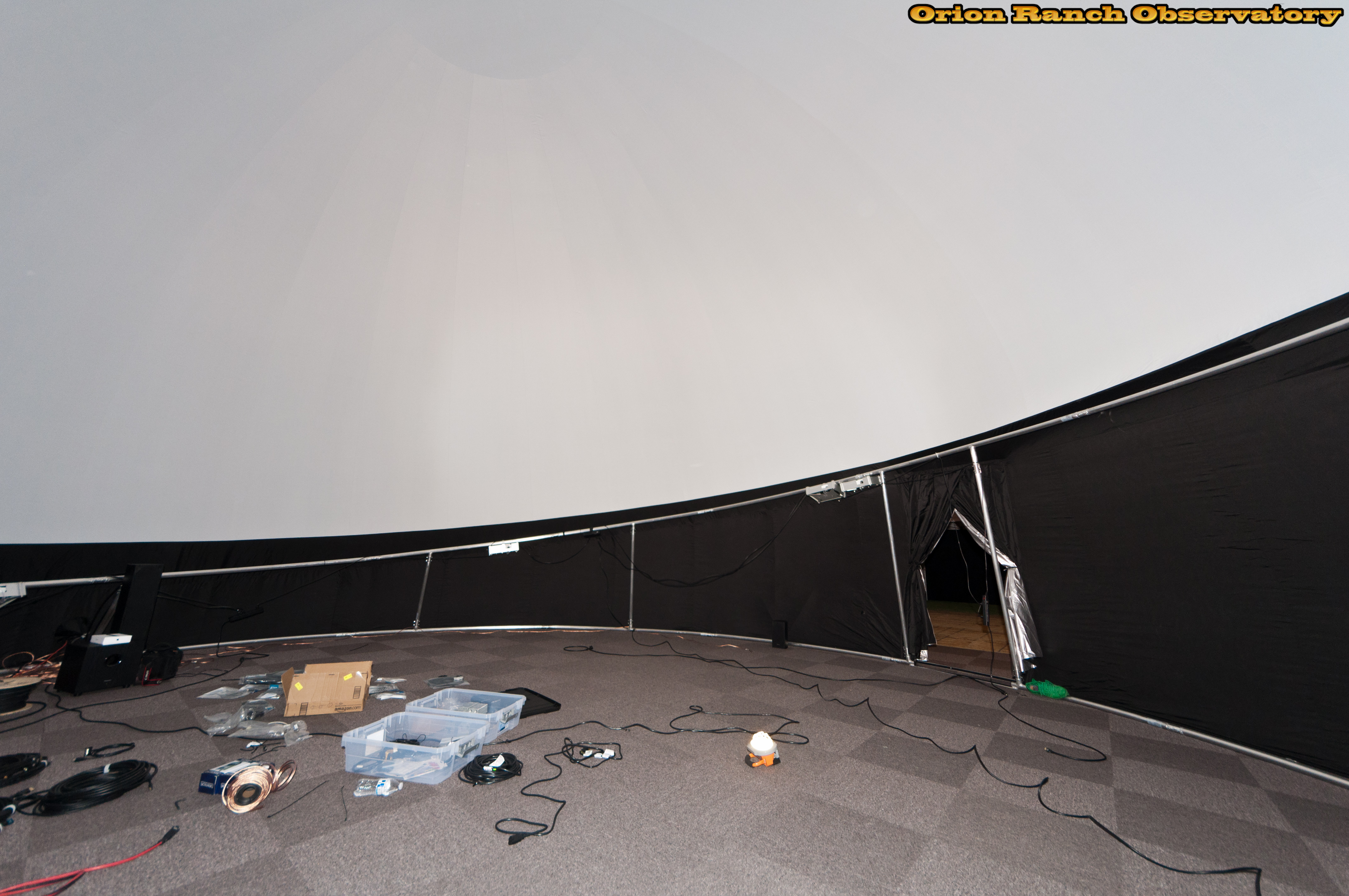 Views from inside the planetarium. The shorter wall is to the front and you can see the projectors being installed around the ring.