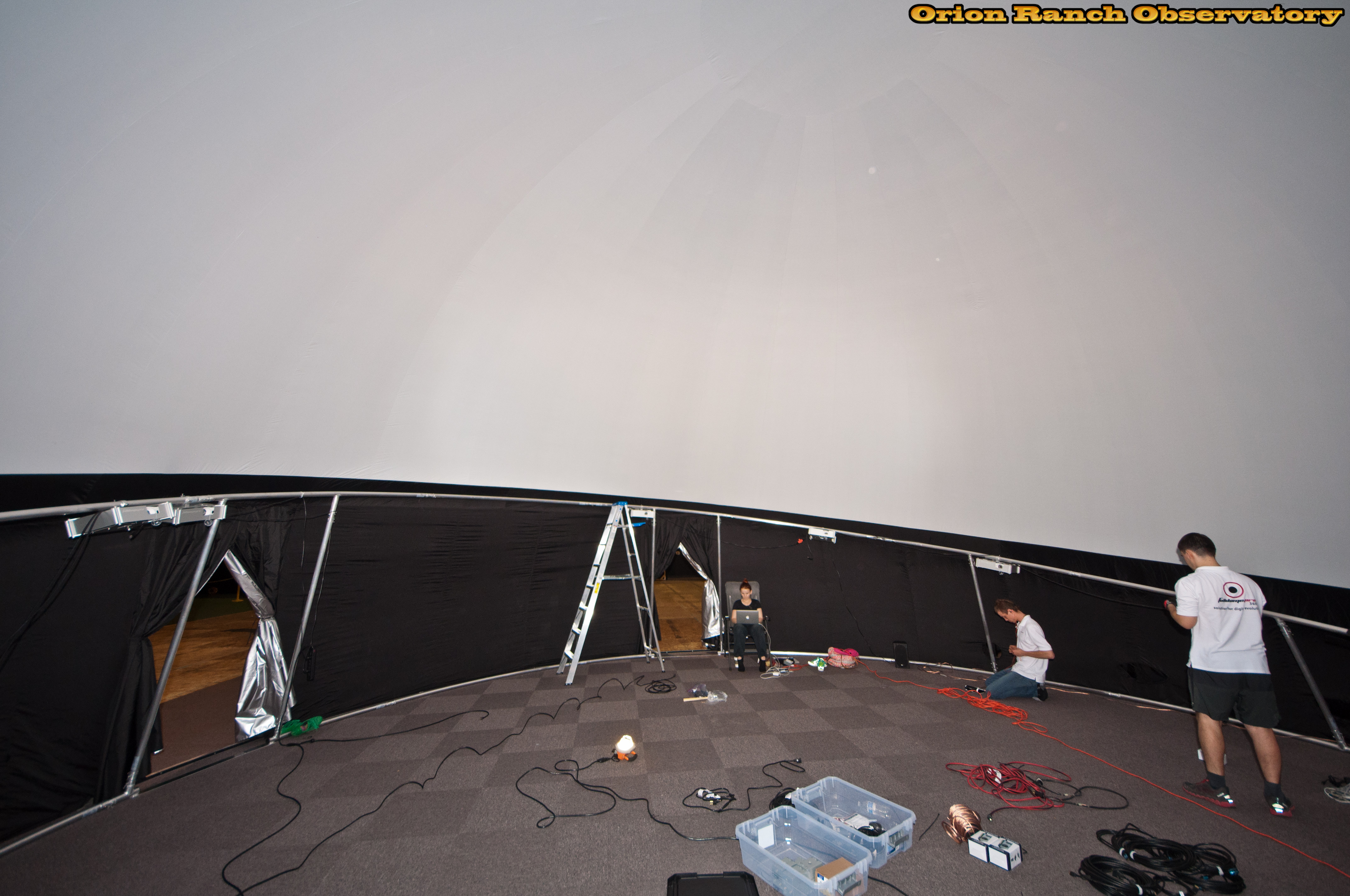 Views from inside the planetarium. The shorter wall is to the front and you can see the projectors being installed around the ring.
