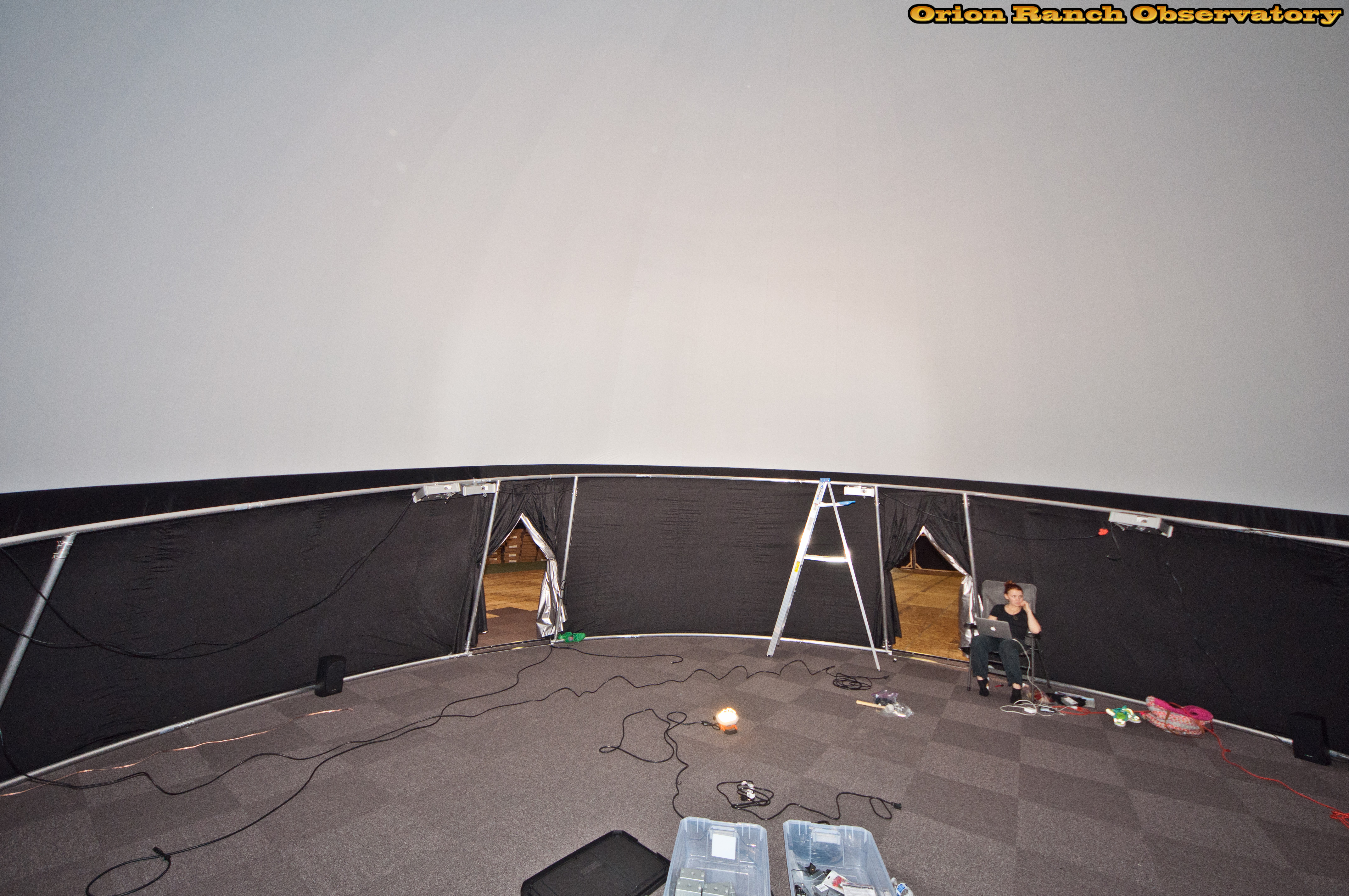 Views from inside the planetarium. The shorter wall is to the front and you can see the projectors being installed around the ring.