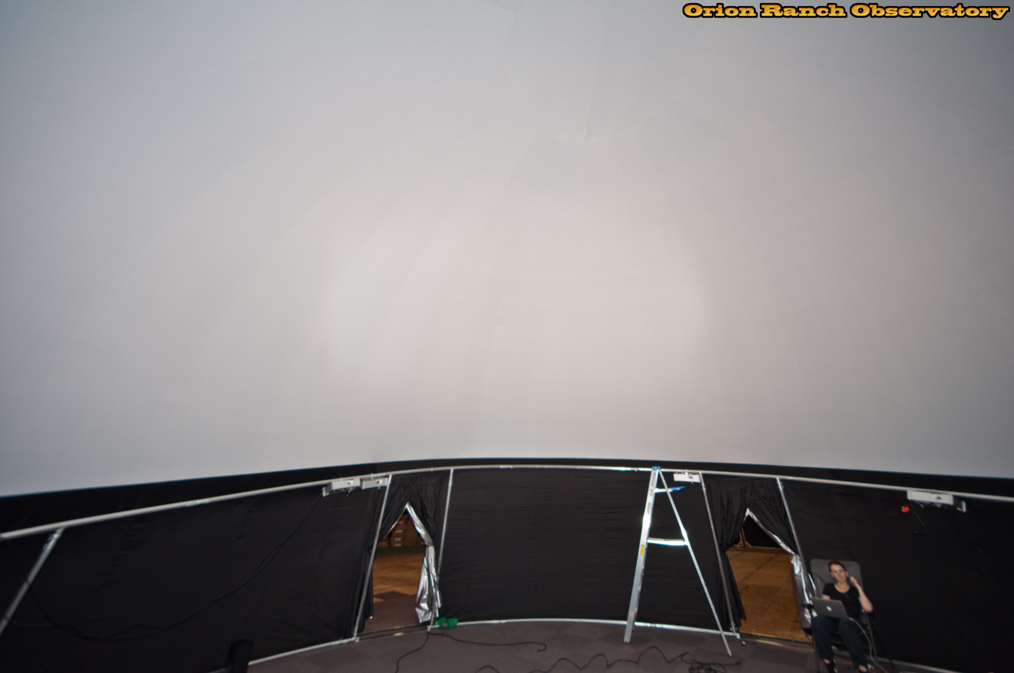 Views from inside the planetarium. The shorter wall is to the front and you can see the projectors being installed around the ring.